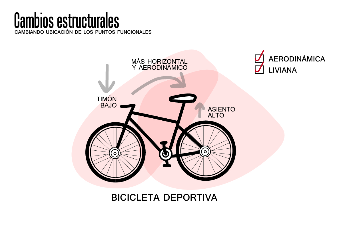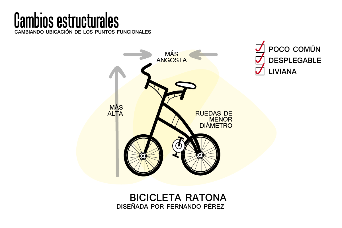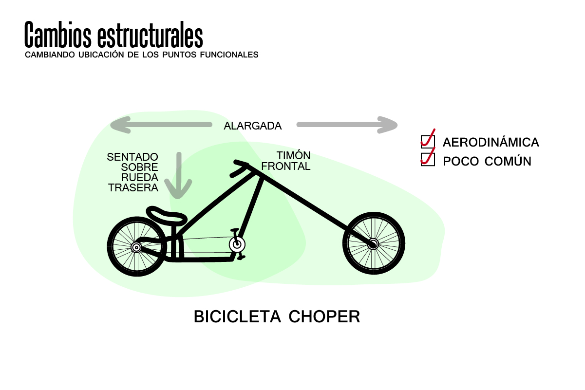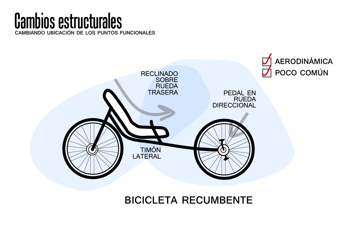 Al pensar en bicicletas, encontramos un amplio abanico de productos con diferentes diseños, materiales y usos. En cuanto a diseño estructural, se tienen en cuenta la funcionalidad y ergonomía de acuerdo al usuario. Al crear un diseño, se parte de la ubicación y equilibrio de los cinco puntos funcionales. Estos son el asiento, el timón, la catalina y ambas ruedas. Si bien la mayoría de diseños sigue una misma estructura, la evolución de la bicicleta nos promete más modificaciones. Al igual que muchos inventos, las mejoras se han dado por las necesidades.