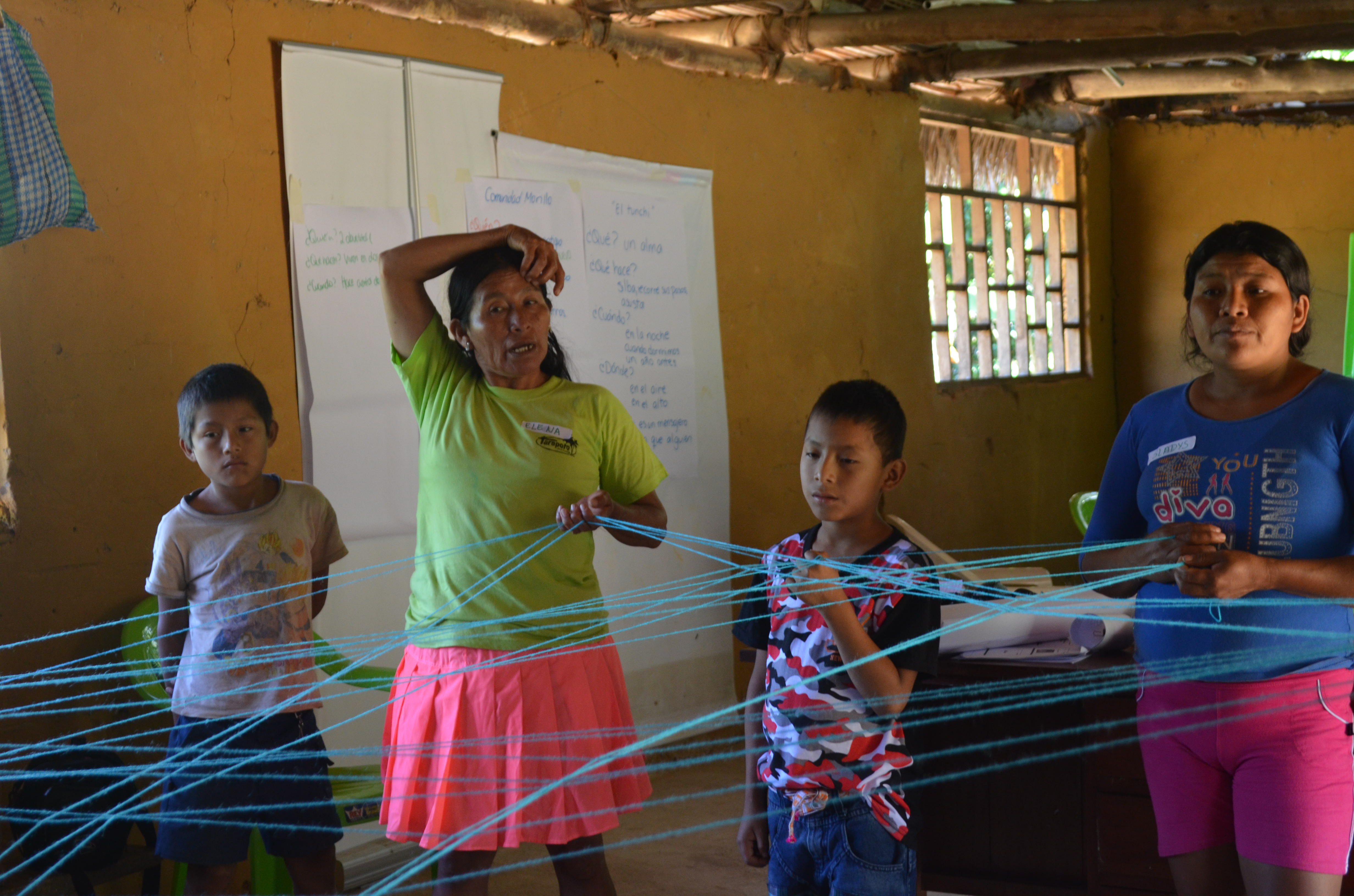 ¿Cómo contar la realidad con los recursos de las narraciones orales kichwas? Este taller se propuso transformar un elemento tan cotidiano en una comunidad, como el tunche, en un recurso para comprender cómo se estructura un mensaje claro, para, así poder transmitirlo a otras mujeres, a otros miembros dentro de su comunidad o fuera de ella.
