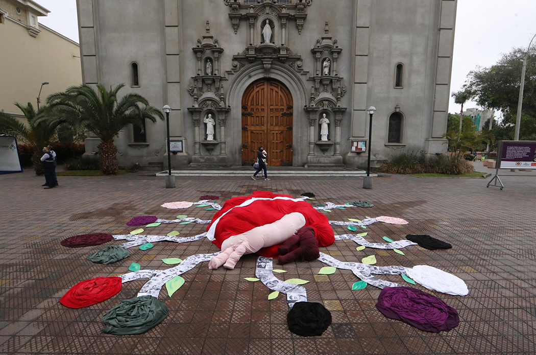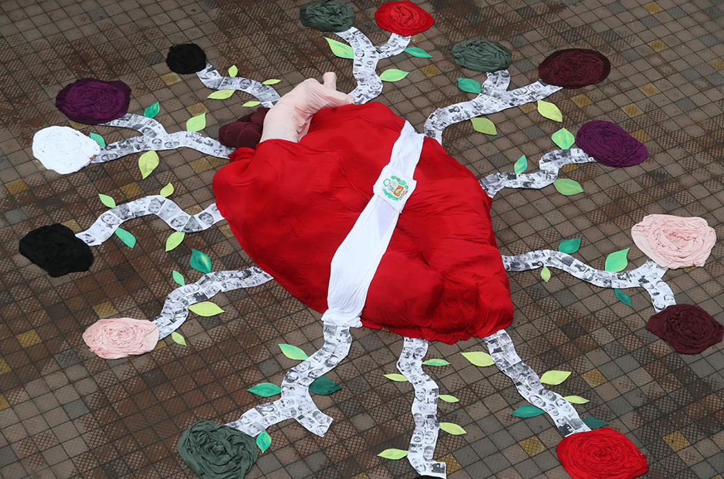 Al pasar enfrente de la iglesia del Parque Kennedy en Miraflores, en estos últimos días, muchos se quedan mirando un prominente corazón cubierto con una tela roja y una franja blanca que incluye el escudo nacional. “Qué bonito”, dicen los transeúntes al ver expuesto este collage – instalación llamado “Un solo latir”.