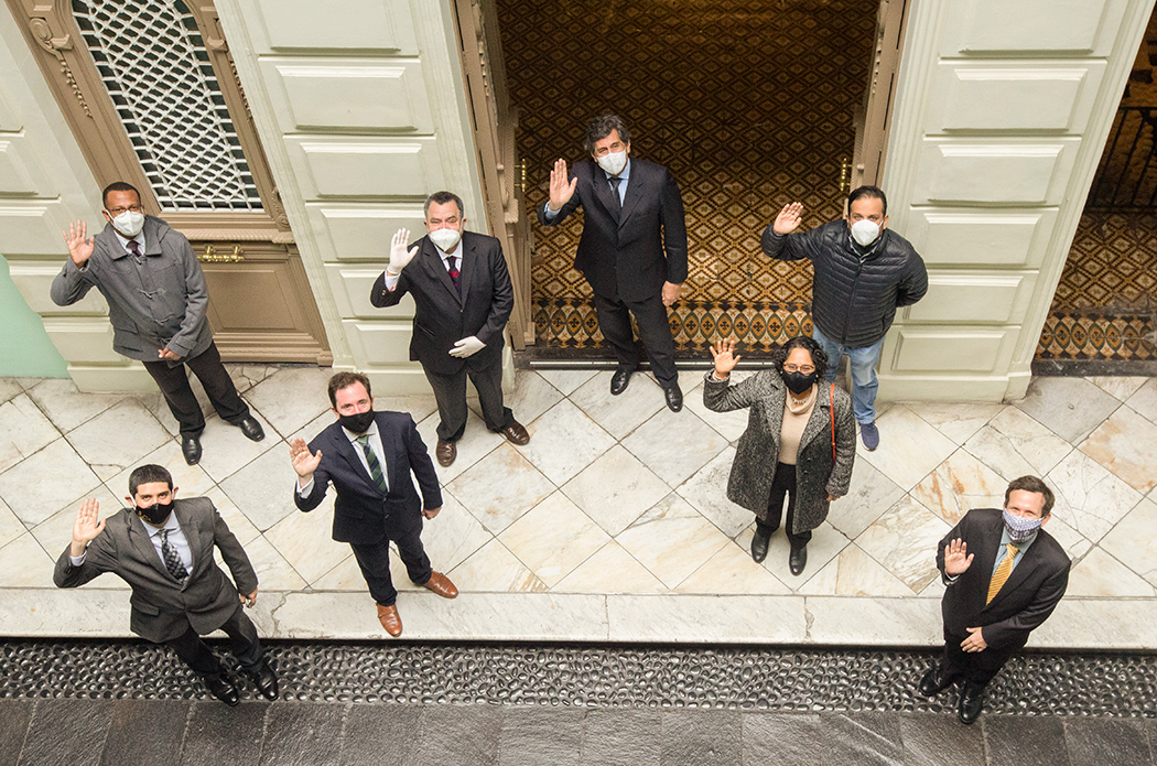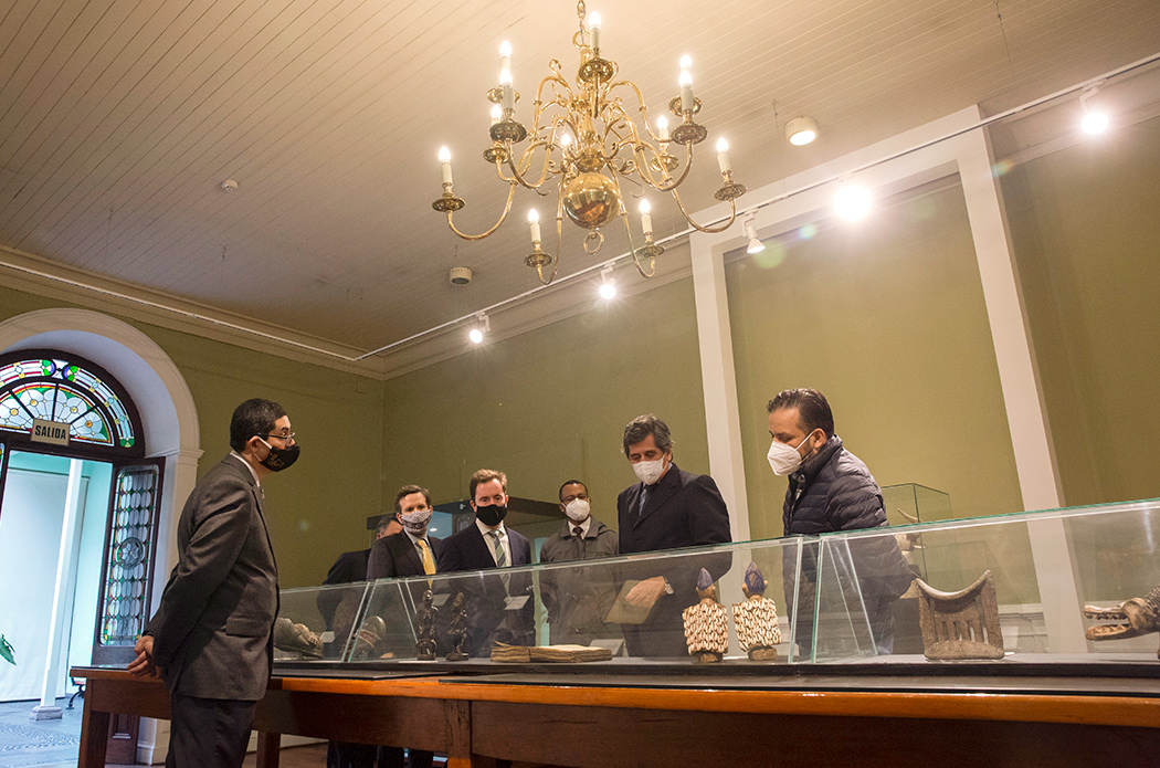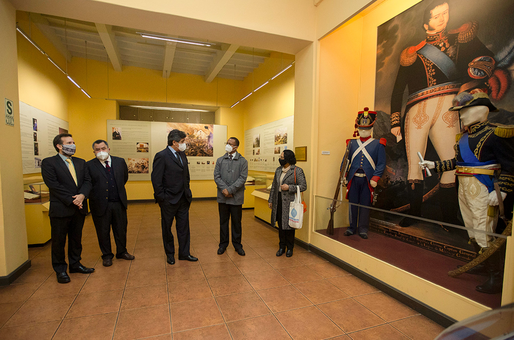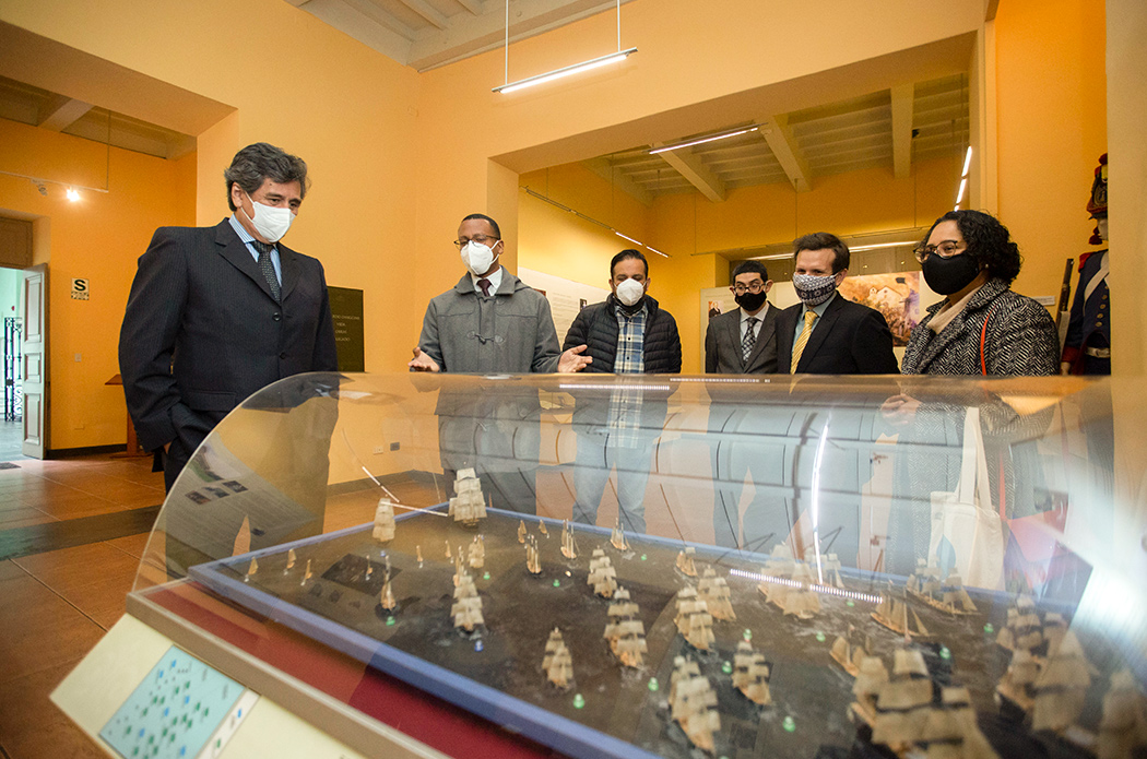 Durante la visita a la Casa O’Higgins y al IRA-PUCP estuvieron presentes Ricardo Aguilar, coordinador de la galería histórica Bernardo O’Higgins, Magally Alegre, coordinadora general de la Casa O’Higgins, Claudio Mendoza, jefe del Museo de Artes y Tradiciones Populares «Luis Repetto Málaga» y Emilio Candela, secretario del IRA-PUCP y el director del IRA-PUCP Jorge Lossio.