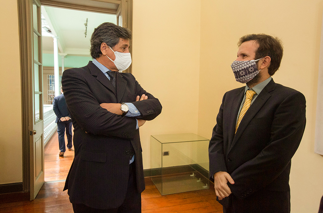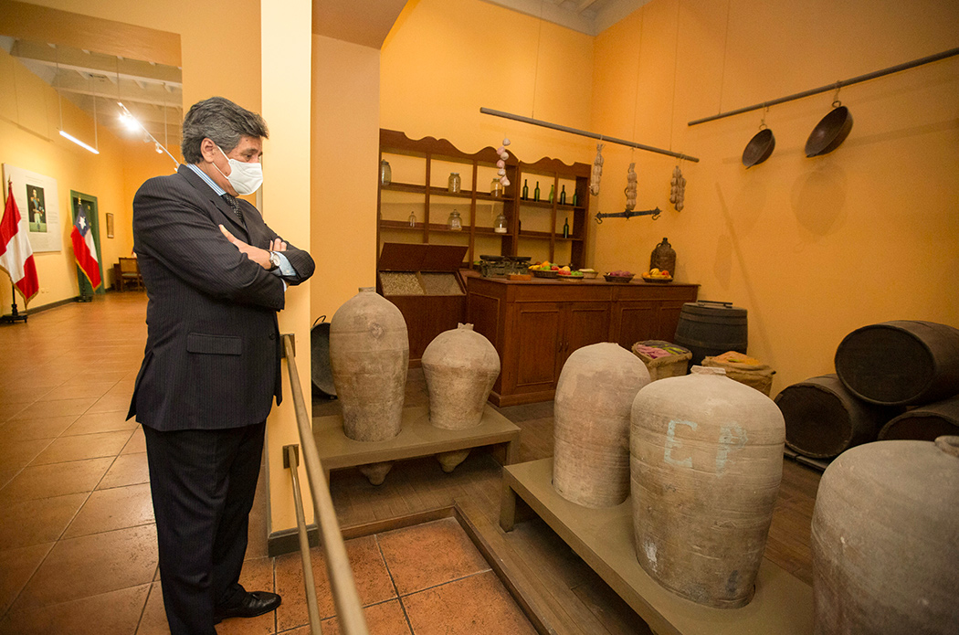 Andrés Barbé, actual embajador de Chile en el Perú, visitó las exposiciones realizadas en la Casa O’Higgins y el Instituto Riva-Agüero (IRA-PUCP), por los cuarenta años del Museo de Artes y Tradiciones Populares «Luis Repetto Málaga».