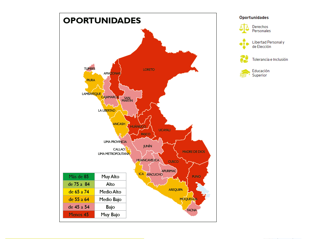 Al ver los resultados, encontramos que Lima y Moquegua lideran el acceso a la educación y, a la vez, son los primeros en los niveles de discriminación e inclusión. Es decir, hay una mejora en cuanto a la posibilidad de ir a un instituto o universidad, pero, al mismo tiempo, hay menor aceptación de equidad de género o hacia las personas con discapacidad. Esta incongruencia es solo un ejemplo de lo que los resultados del IPSR 2016 nos pueden mostrar. Y ahí, justamente, radica la importancia de esta investigación.