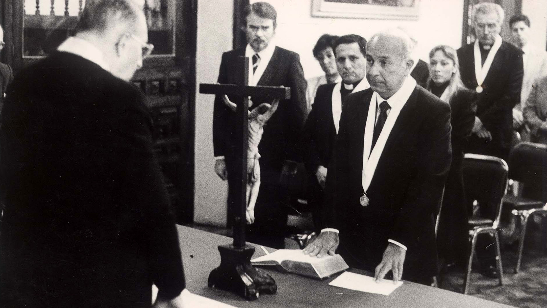 Su capacidad, don de gente, afán de servicio y progreso personal como institucional, lo fueron llevando a las a los más altos organismos de la PUCP, al Vice Rectorado y Rectorado de nuestra Casa de Estudios. Fue el primer Ingeniero y Científico Rector de la PUCP.