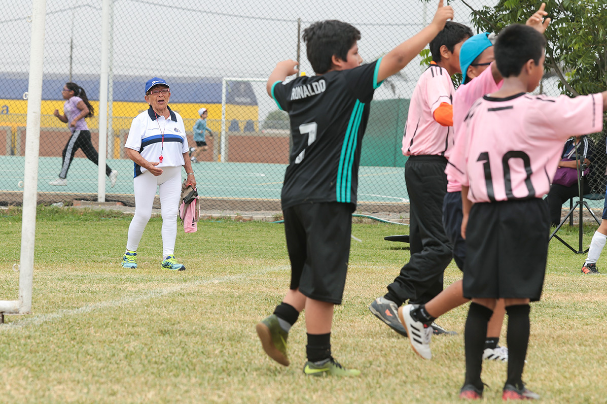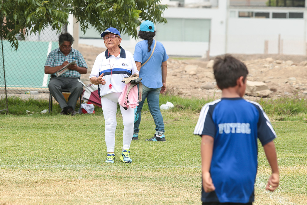 El equipo de la escuela de formación deportiva de fútbol de la PUCP disputó un partido con el Club Deportivo América Mimi. Afuera de la cancha se encontraba una entrenadora muy especial, la popular «Vieja», considerada a sus 92 años la D.T. de mayor edad en nuestro país.