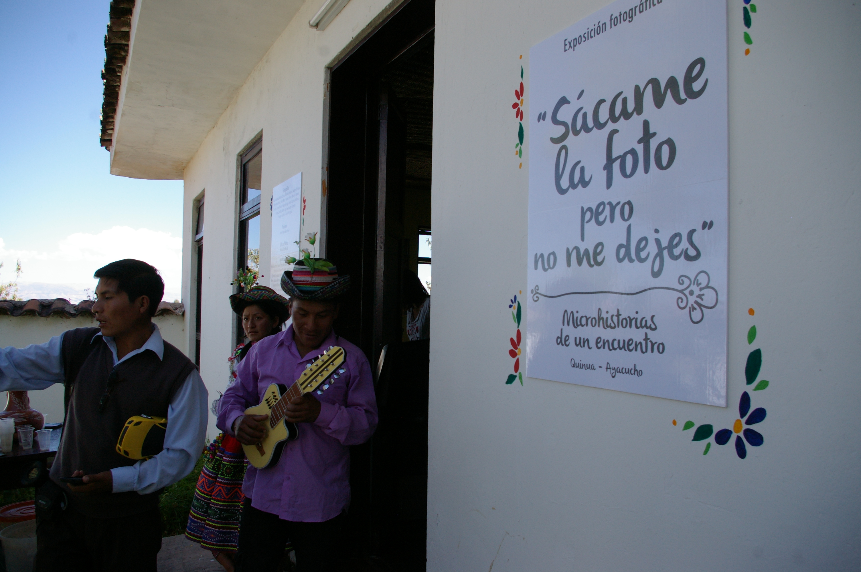 Debemos admitirlo, se sabe muy poco de Quinua, como si la historia se hubiera quedado congelada en la batalla de Ayacucho y en el periodo del conflicto armado interno. Entonces, surgen las primeras preguntas: cómo es Quinua actualmente, cómo viven los quinuinos. Por ello, los estudiantes de la Facultad de Ciencias y Artes de la Comunicación que llevaron el curso de Fotografía Documental (dictado por la profesora Rocío Trigoso), en el semestre 2013-2, decidieron ir y registrar la vida del pueblo. Anteriormente, la exposición se realizó en una casona en Barranco, en diciembre del 2013, y ahora, gracias a un financiamiento de la Dirección Académica de Responsabilidad Social, la muestra se inauguró en Quinua. La exposición cuenta con imágenes de Kenty Aguirre, Nicolé Hurtado, Solange Avila, Claudia Valdivia, Yazmín Rivero, Anaís Muro, André Hurtado, Andrea Quiroz, Bárbara Salas, Silvana Zevallos, Romina Infantes, Magda Pachecho, Rodrigo Chávez, Joseph Sifuentes, Yohanna Nestares, Cristina Torres y Rosario Romero; bajo la asesoría de la profesora Rocío Trigoso y la jefa de práctica Patricia Díaz.