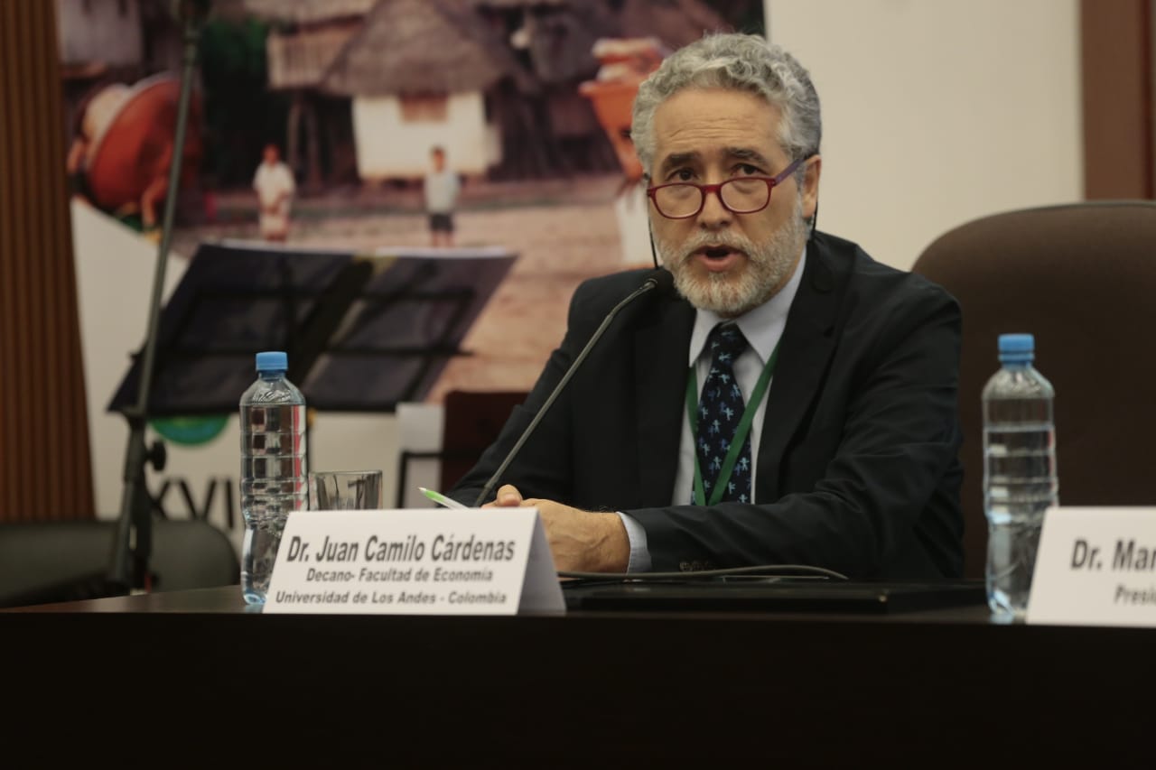 Acto seguido, el Dr. Juan Camilo Cárdenas, decano de la Facultad de Economía de la Universidad de los Andes (Colombia), invitó a los participantes a salir de su zona de confort y conocer otras realidades. “Quiero agradecer a todos los que nos confiaron esta tarea y a los que han apoyado en la organización de la convención. Espero que encuentren información valiosa en estos paneles, aprendan algo nuevo y que cuando vuelvan a casa se sientan diferentes luego de escuchar distintas voces y perspectivas sobre las problemáticas en torno a los bienes comunes”, exclamó.
