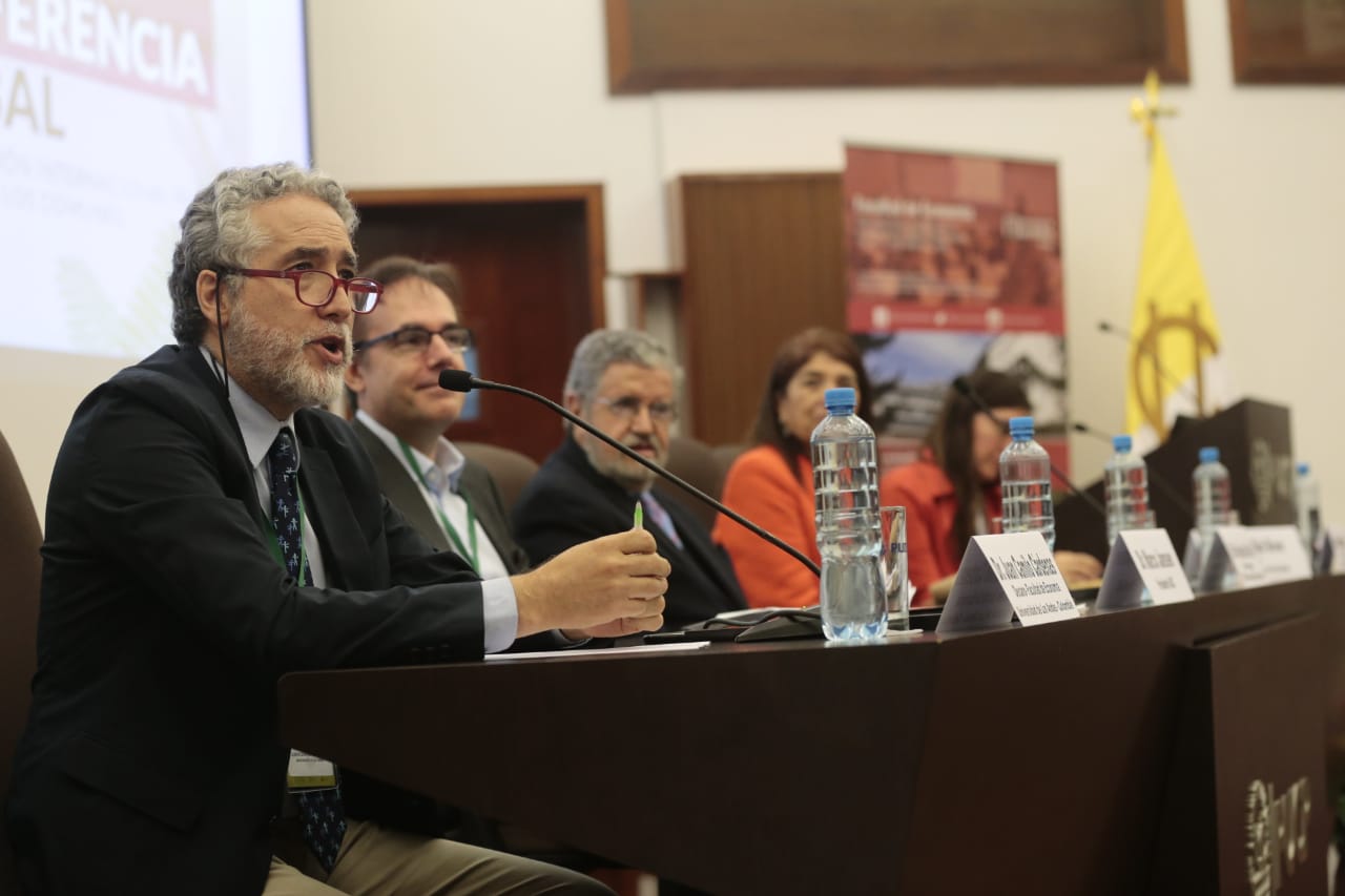 Finalmente, nuestro rector pro tempore, Dr. Efraín Gonzales de Olarte, dio una breve reflexión y unas palabras de bienvenida. “Estamos muy contentos en la PUCP de tenerlos a todos ustedes, muchos de ustedes han investigado sobre este tema, muchos de ustedes son militantes de este tema, y creo que esta Universidad también es militante de los bienes comunes. Nuestro propio campus es un bien común, porque una universidad como la nuestra se define como una comunidad de profesores, alumnos y graduados, una cosa absolutamente abstracta; sin embargo esa comunidad mantiene un campus, mantiene una cultura. Esperamos que tengan una experiencia de trabajo fructífero durante la conferencia”, concluyó.