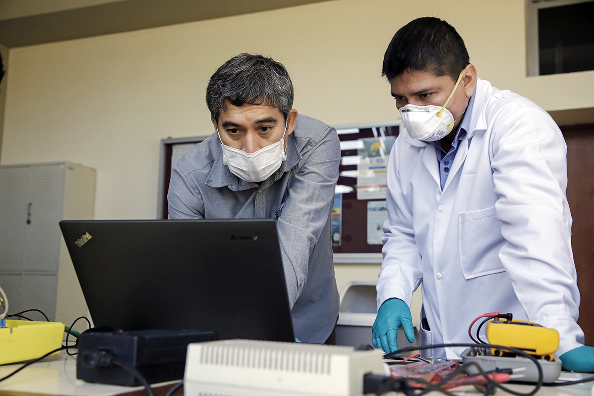 Así, profesores y trabajadores de nuestra Universidad vienen aplicando los conocimientos que han acumulado en varios años de enseñanza. “Nosotros queremos apoyar en esta situación de emergencia. El personal que trabaja en nuestros laboratorios aporta regularmente en la investigación, desarrollo y mantenimiento de los equipos de la sección”, indica Cataño. “Todos ellos son personas comprometidas con el país”, asegura, antes de continuar abocado a esta labor.