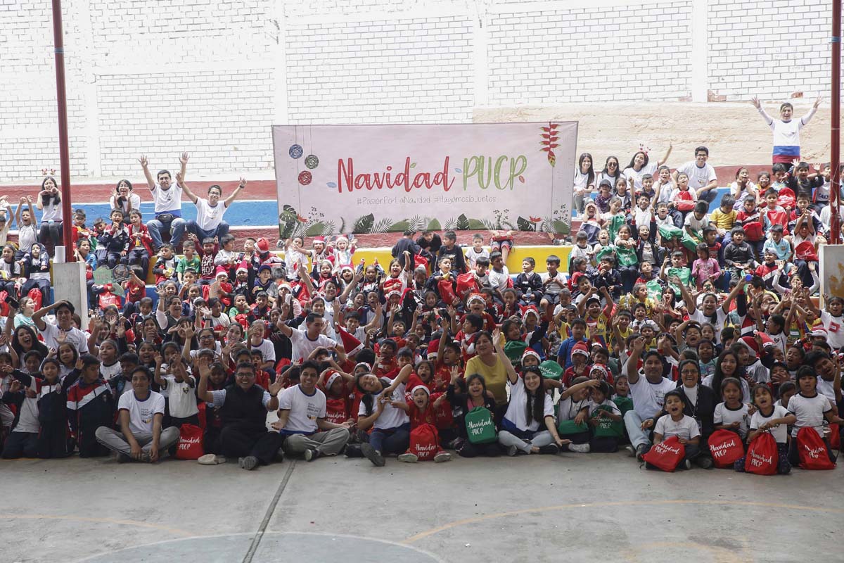 El pasado martes 17, más de 100 voluntarios -entre alumnos, docentes y administrativos de nuestra Universidad-, partieron desde muy temprano a San Juan de Lurigancho, distrito en el cual llevaron a cabo una noble y entretenida labor: darle una sorpresa a 1,150 niños de cuatro colegios del Sector III de la Urbanización Juan Pablo Segundo, por estas fiestas.