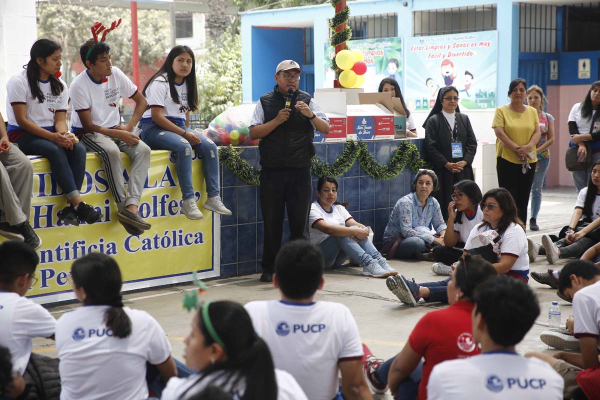“Cada colegio tuvo, en promedio, 50 voluntarios para realizar todas las actividades, de 9 a.m. a 12 p.m., las cuales incluyeron un show artístico, la clásica chocolatada y la entrega de regalos. Al final hubo un momento de reflexión sobre el significado de la Navidad y qué es lo que nos proponemos hacer convirtiendo buenas intenciones y pensamientos en acciones concretas”, explicó el sacerdote.