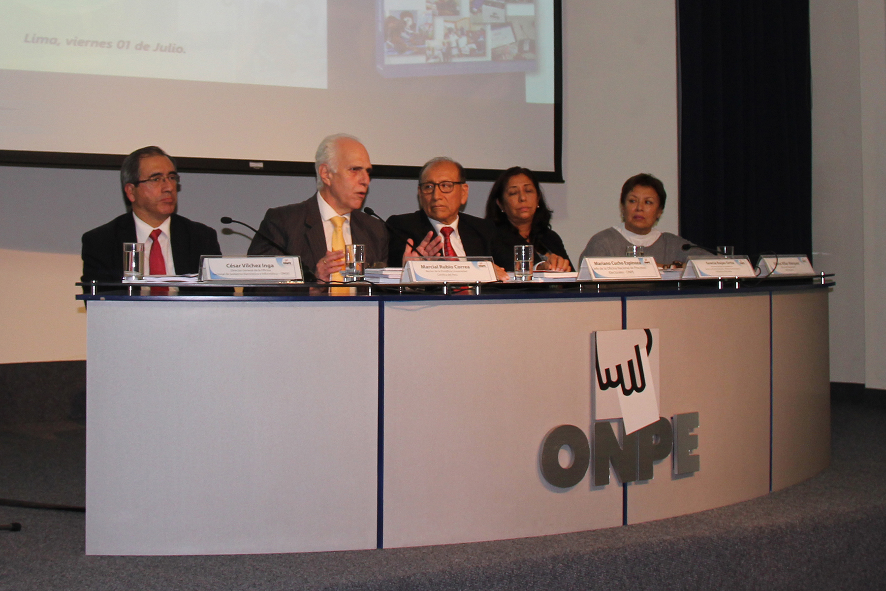 En estos libros publicados por la ONPE se registra la evolución de la democracia, a través de la inclusión social y la implementación tecnológica. En la presentación pública participaron el Dr. Marcial Rubio Correa, rector de la PUCP; Mariano Cucho, jefe de la Oficina Nacional de Procesos Electorales – ONPE; Grecia Rojas, directora general de Igualdad de Género y No discriminación- Ministerio de la Mujer y Poblaciones Vulnerables; César Vílchez, director general de la Oficina Nacional de Gobierno Electrónico e Informática – Ongei; y Eliana Villar, oficial de Programa de ONU Mujeres.