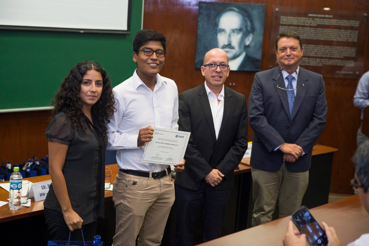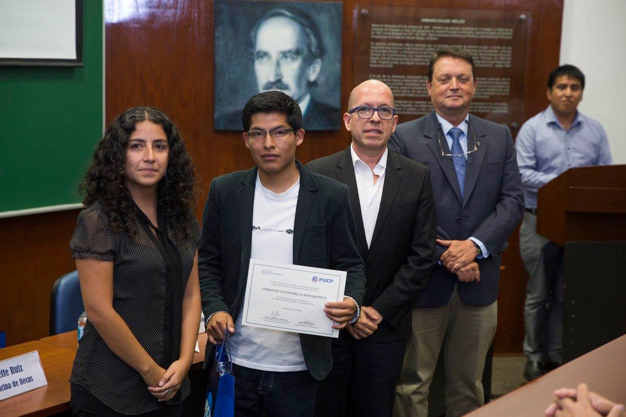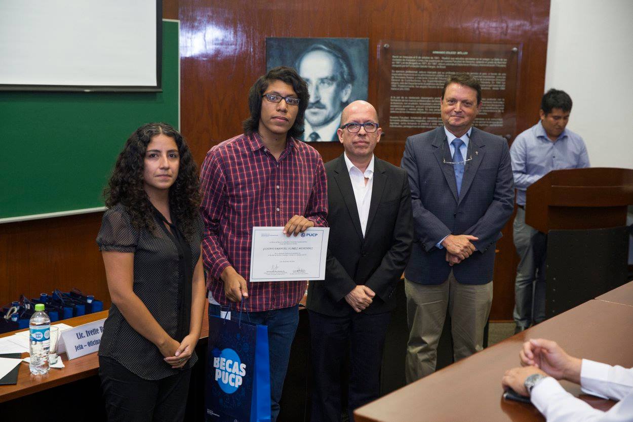 Se reconoció a 21 becarios por sus logros académicos en el semestre 2017-2. Asimismo, a 8 alumnos ganadores de otros programas de becas de la PUCP, a 3 egresados y al alumno con mejor rendimiento de la carrera de Ingeniería Biomédica.
