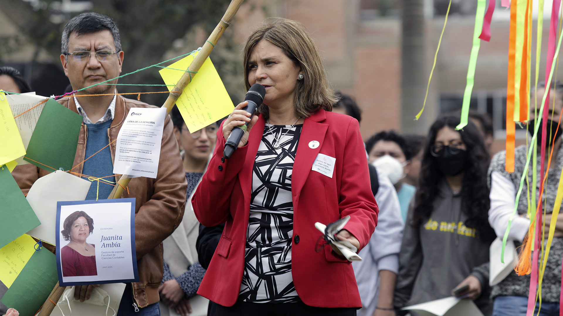 Este jueves 22 de septiembre fue el día central de la semana de actividades para conmemorar a nuestros seres queridos y sobrellevar el duelo como comunidad. La Ruta de la memoria surge como parte del proyecto de investigación “Duelo y crecimiento”, impulsado por el Departamento de Psicología y Pulso PUCP. Desde su origen, fue una iniciativa colectiva, ya que recoge aportes de la representación estudiantil y autoridades que contribuyeron en el diseño del recorrido conmemorativo.