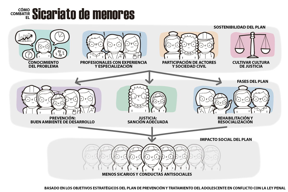 El sicariato de menores es un fenómeno más complejo, pues detrás de ellos están organizaciones criminales, muchas veces transnacionales, que no se dedican solo al sicariato. Lamentablemente, no se desarticulan estas redes y solo son apresados los sicarios que son sustituibles. Para Meini, la mejor solución no es modificar la ley, sino diseñar e implementar políticas de prevención y de acompañamiento para los menores infractores de la ley penal.