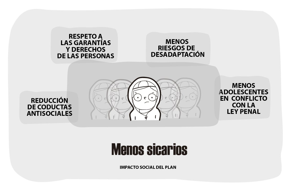 Los programas cuentan con el apoyo de educadores, psicólogos y presencia policial. Se trata de tomar contacto con las poblaciones juveniles expuestas a la delincuencia. Si el menor comete una infracción, se trabajará en su rehabilitación y que culmine su proceso de socialización. Si bien la criminalidad juvenil es un problema grave, se debe trabajar en los problemas que realmente sientan las bases de la inseguridad. No es casual que las zonas más expuestas a la criminalidad sean aquellas en donde hay menor presencia del Estado. “Si se quiere reducir la utilización de jóvenes como sicarios o delincuentes, el Estado debe invertir en educación y empleo. Pero eso es lo que no queremos escuchar”, asegura Meini.