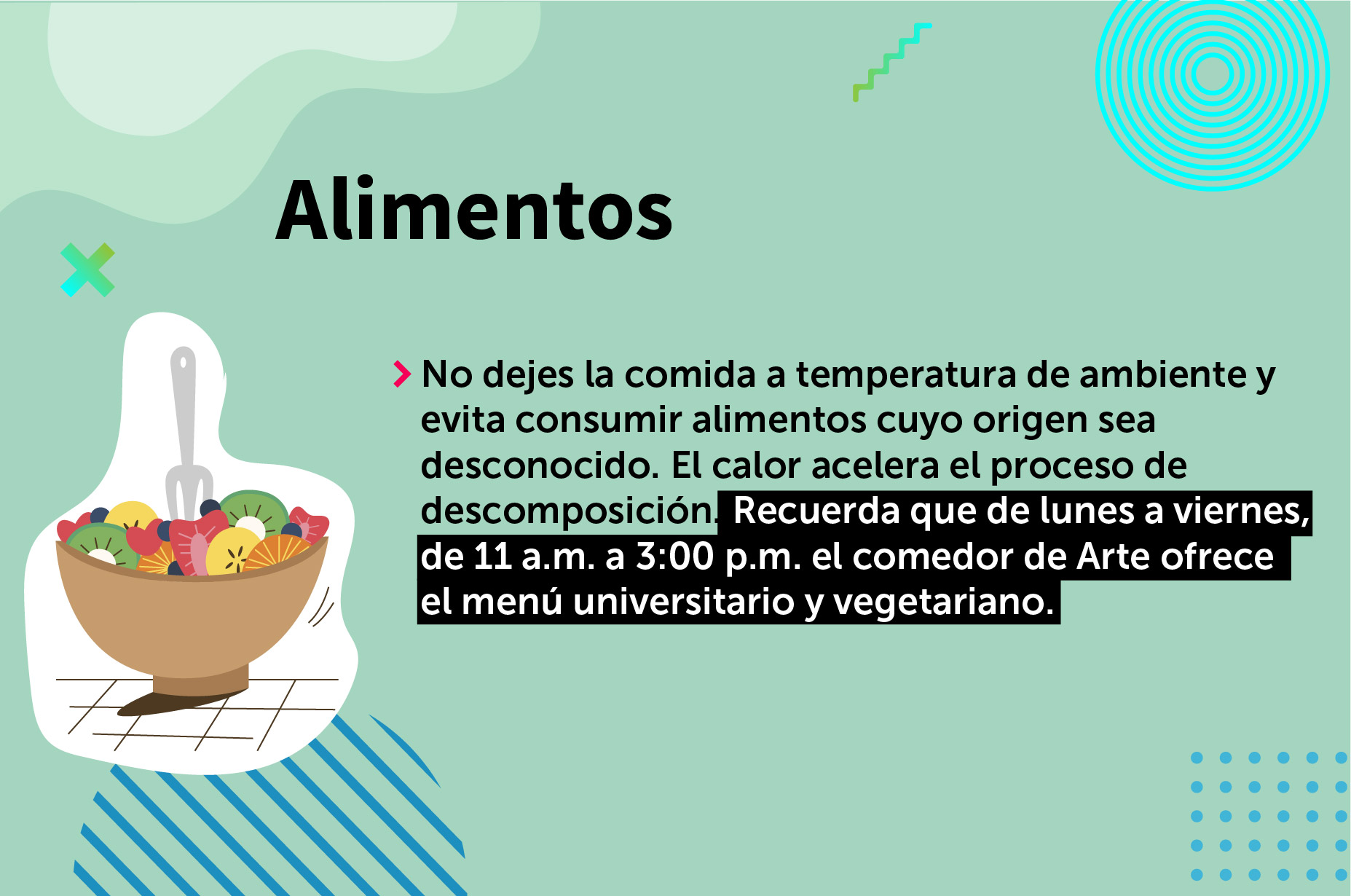 En el día a día, mientras caminamos en la calle o por el campus, nos movilizamos en el transporte público o nos preparamos para dormir, la sensación de calor puede volverse muchas veces insoportable en este verano. Pero no todo está perdido. Con paciencia, la mejora de nuestros hábitos y algunas acciones saludables, podemos pasar esta temporada de una mejor manera.