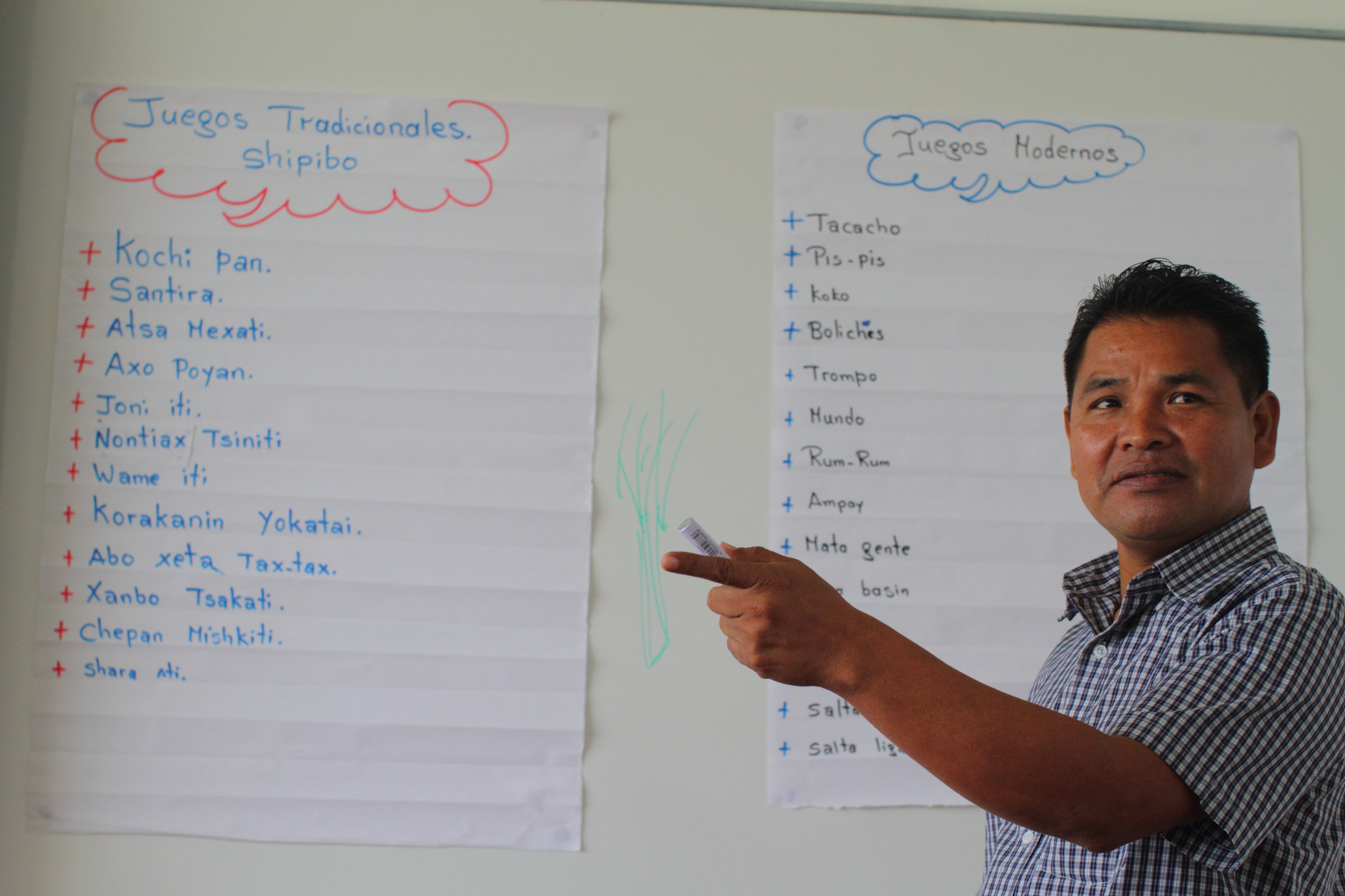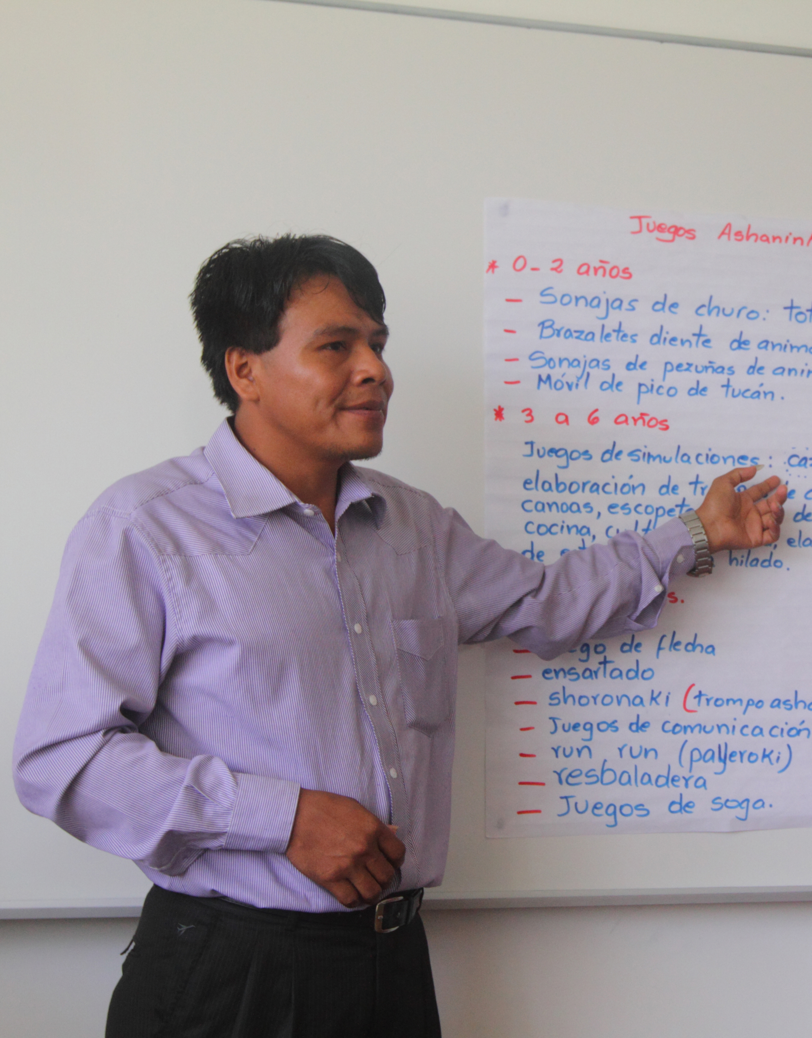 • La EIB es parte de la solución del desarrollo de un pueblo. Mi meta es que todos los docentes bilingües se empoderen para sacar adelante al país a través de nuestra cultura y nuestro conocimiento (Gilder Ruiz, maestro shipibo-konibo).