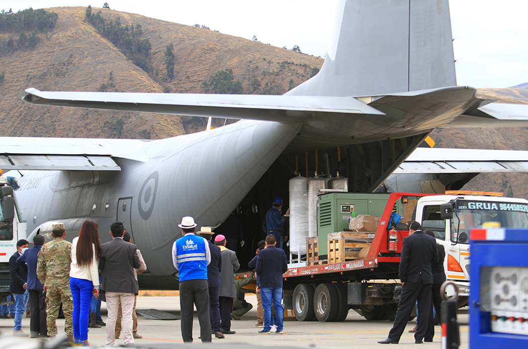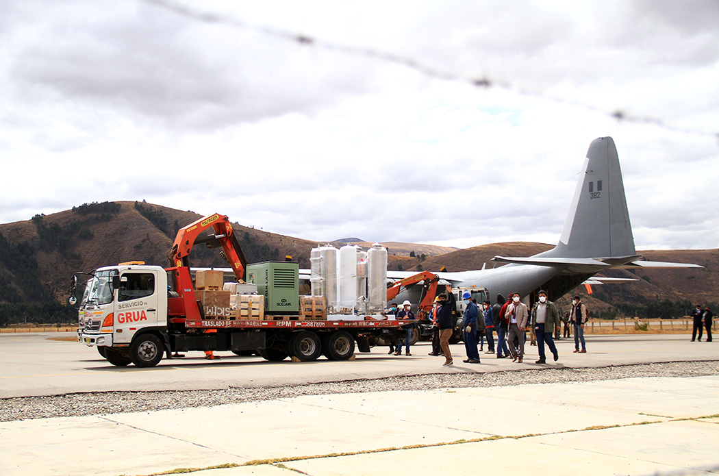 En un vuelo de la Fuerza Aérea del Perú, el sábado 22 de agosto, llegaron al aeropuerto de Jauja dos plantas modulares de producción de oxígeno medicinal. Fabricadas por nuestra Universidad, en alianza con la empresa Seralt, operarán en los hospitales Domingo Olavegoya, de Jauja, y Daniel Alcides Carrión, de Huancayo.