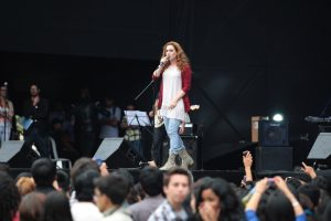 Acompañada de Shantal, la talentosa actriz peruana nos deleitó con un variado repertorio de canciones en inglés que incluyó covers de Adele, Cristina Aguilera y Amy Winehouse.