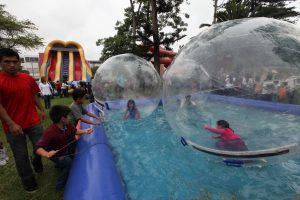 Grupos de niños, acompañados de sus padres, saltan, trepan, corretean eufóricos y juegan sin descanso. Es que Casa Abierta también ha tenido en cuenta a los más pequeños y ha preparado para ellos varios atractivos juegos: circo, juegos inflables, cuenta cuentos, circo y shows de ciencia a cargo del grupo Mad Science. Todo esto en