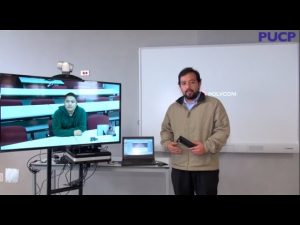 Nicolás Lama, de la Dirección Informática Académica (DIA) de la PUCP, explica el funcionamiento y las ventajas que otorga a docentes y alumnos el servicio de videoconferencias en HD del nuevo Complejo de Innovación Académica de nuestra Universidad.
