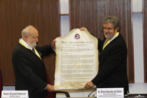 El escritor cubano Leonardo Padura, invitado de la Feria de Libro de Lima (FIL) y ganador del premio Princesa de Asturias 2015, fue galardonado con el doctor honoris causa de nuestra Universidad.
