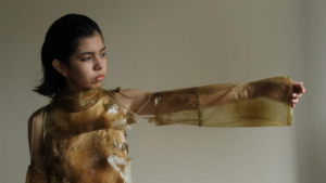 Felicitamos a Verónica Madueño, egresada de la Facultad de Arte y Diseño que, en su innovadora tesis, propone una colección de ropa a partir de biomateriales que permiten que sea olida, degustada, tocada y vista.