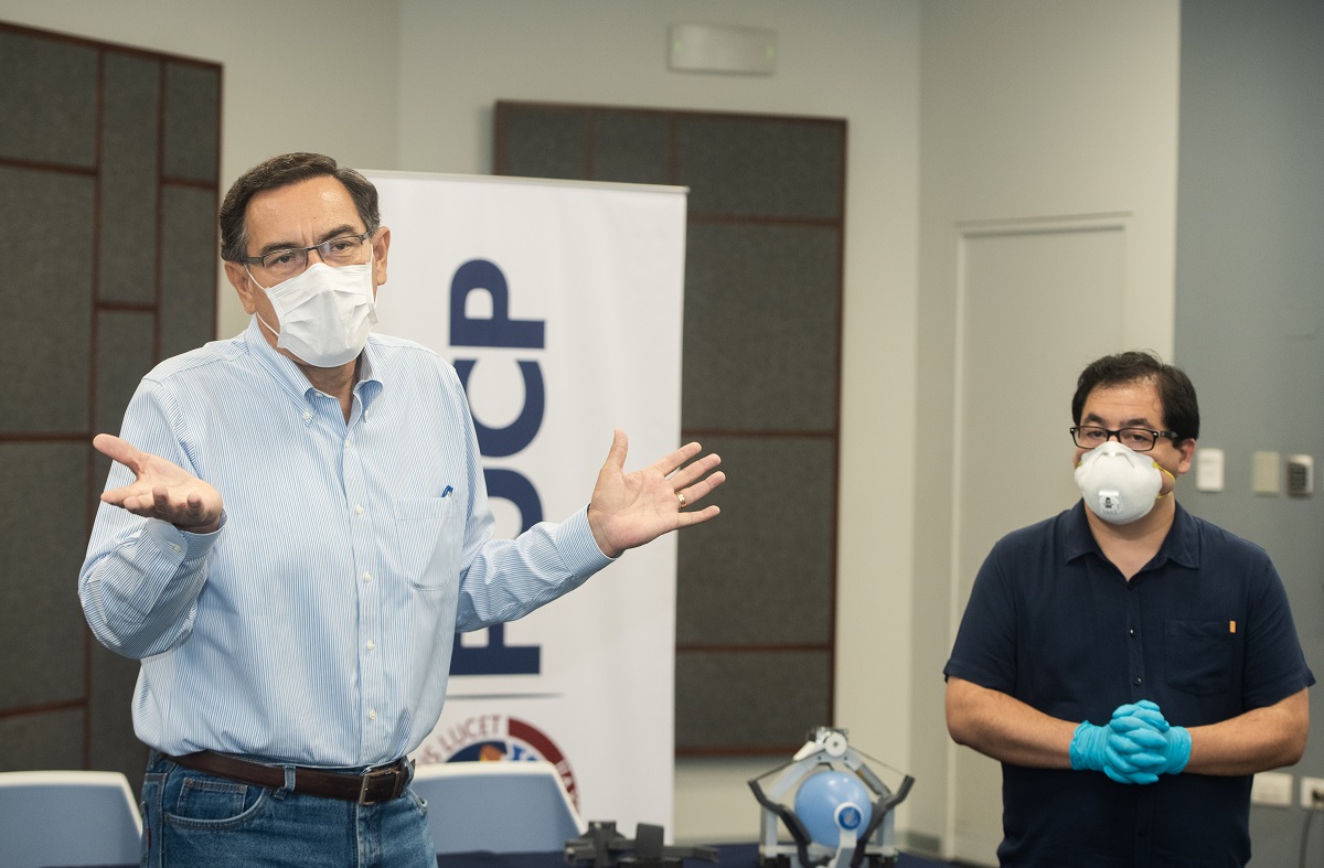 “No me queda más que, a nombre del Gobierno, felicitar esta iniciativa de la PUCP, acompañada de una serie de empresas, que se suma a este esfuerzo por lograr producir en nuestro país un equipo de alta tecnología que actualmente es de gran utilidad para enfrentar a la COVID-19”, indicó Vizcarra.