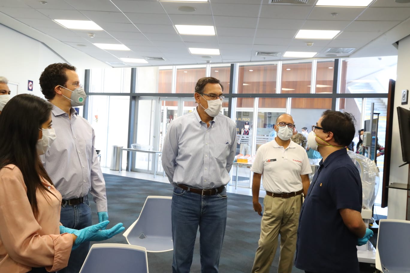 Este domingo 12 de abril, nuestro rector Carlos Garatea y el vicerrector de Investigación Aldo Panfichi recibieron, en nuestro campus, al presidente Martín Vizcarra y al ministro de Salud, Víctor Zamora. Ellos llegaron para conocer el respirador mecánico de emergencia Masi, proyecto conjunto desarrollado por la PUCP, BREIN (el hub de innovación del grupo Breca), Diacsa, Zolid Design y Energy Automation Technologies.