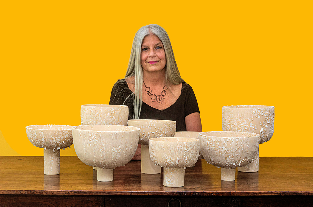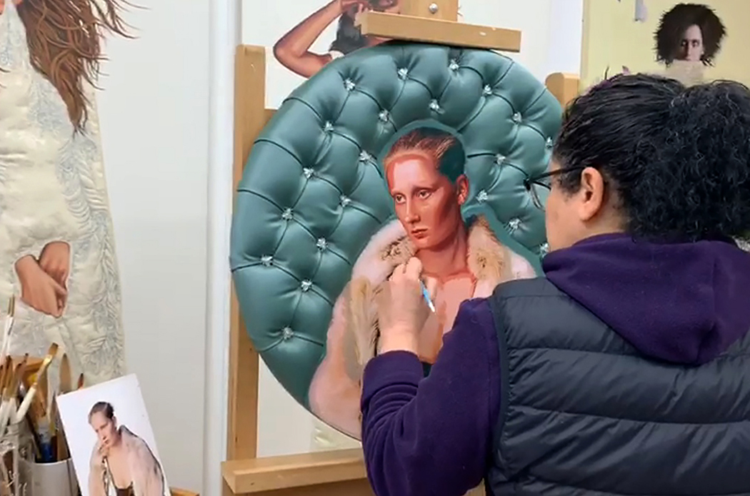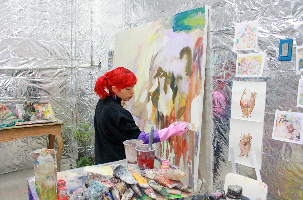 Su trabajo artístico empieza por un referente -que puede provenir de la literatura, un evento o una inquietud-, el cual traduce a una imagen habitualmente representada a través del cuerpo femenino. “Es como un alter ego que construyo y al que voy incorporándole atributos. Allí aparecen la técnica mixta, texturas y materiales que, a modo de escenografía o vestuario, me ayudan a contar la historia”, señala.