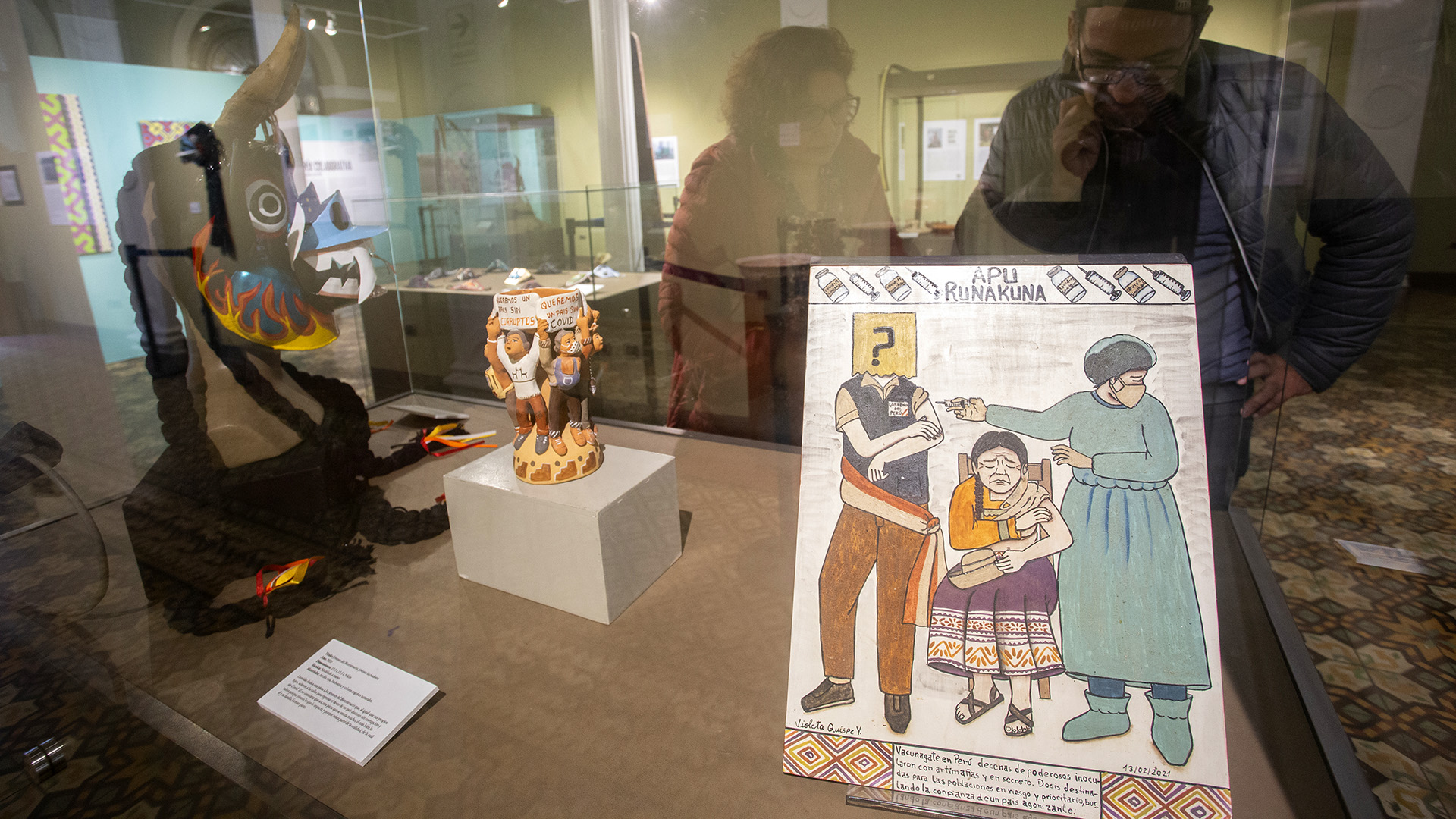 La muestra resalta la expresión artística en un contexto de crisis sanitaria y política del país. Obra de Leonidas Orellana.Puedes visitar la exposición en la Casa O’Higgins PUCP (Jirón de la Unión 554, Lima).De izquiera a derecha los trabajos de Violeta Quispe, Leonidas Orellana y Martín Granados.