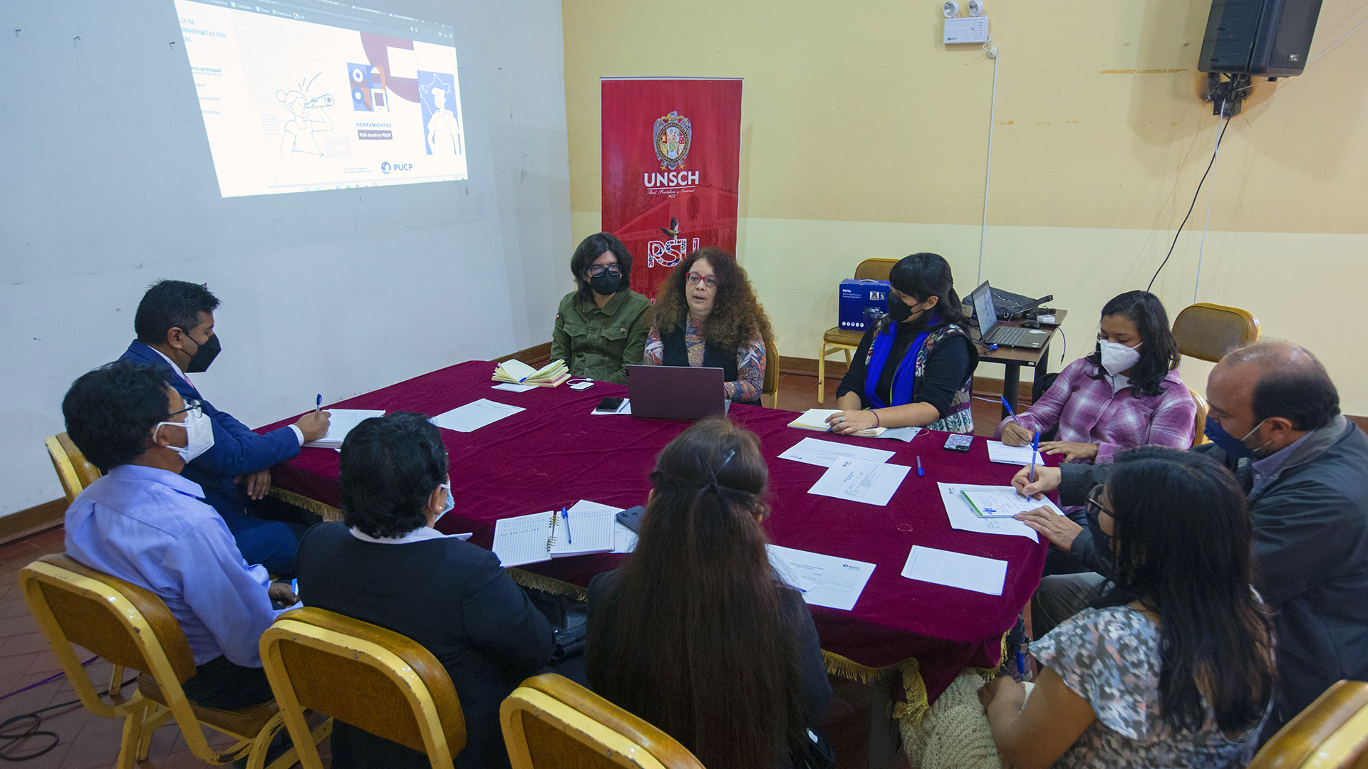 Mesa de trabajo en la Universidad Nacional San Cristóbal de Huamanga.