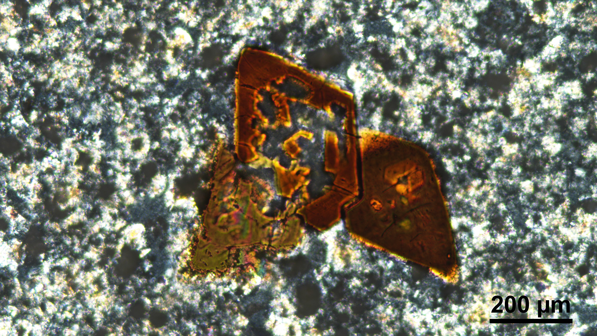«Es la primera vez en el mundo que se describe una mica de litio en rocas de origen volcánico», explica nuestro investigador.Detalle de cristales de zinnwaldita con borde de lepidolita en matriz de toba vistas bajo el microscopio óptico.Parte de la preparación de las muestras se realizó en el laboratorio QEMSCAN del Departamento de Ingeniería.