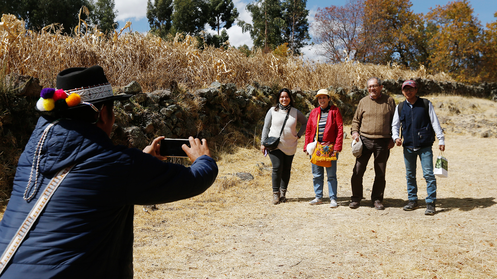 Al ingreso, nos recibe una fuente de agua que refleja el azul del cielo cusqueño. Una fuente artificial que tenía como fin abastecer del líquido elemento a Raqchi. De inmediato, empezamos el recorrido del camino inca, mientras éramos rodeados con el casi mágico paisaje andino que inexplicablemente te recarga de energía. Sin palabras, el profesor Marco Curatola registra con su cámara fotográfica cada detalle.