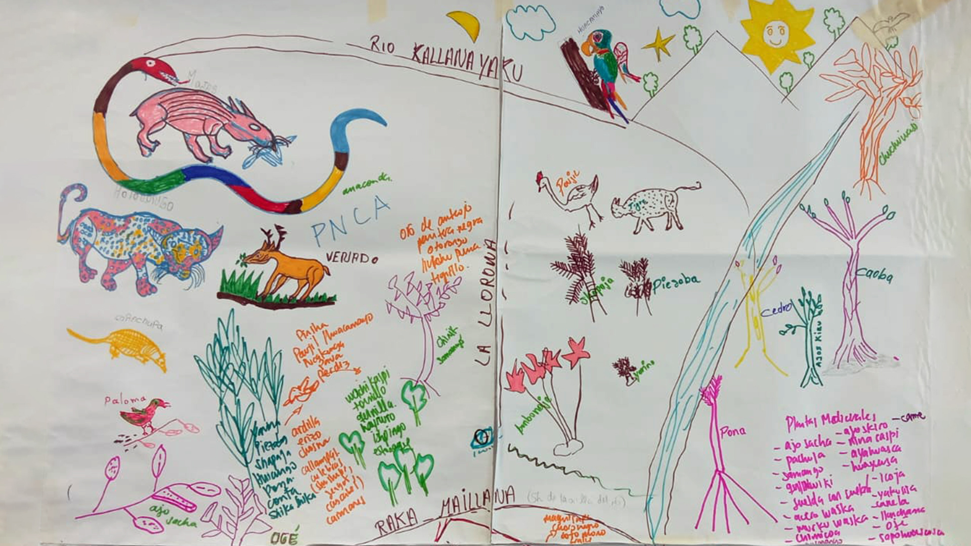 El "mapa parlante" es una representación visual del detalle y complejidad de la vida territorial de los Pueblos Indígenas. Toma como data los testimonios orales y gráficos de quienes habitan el territorio.