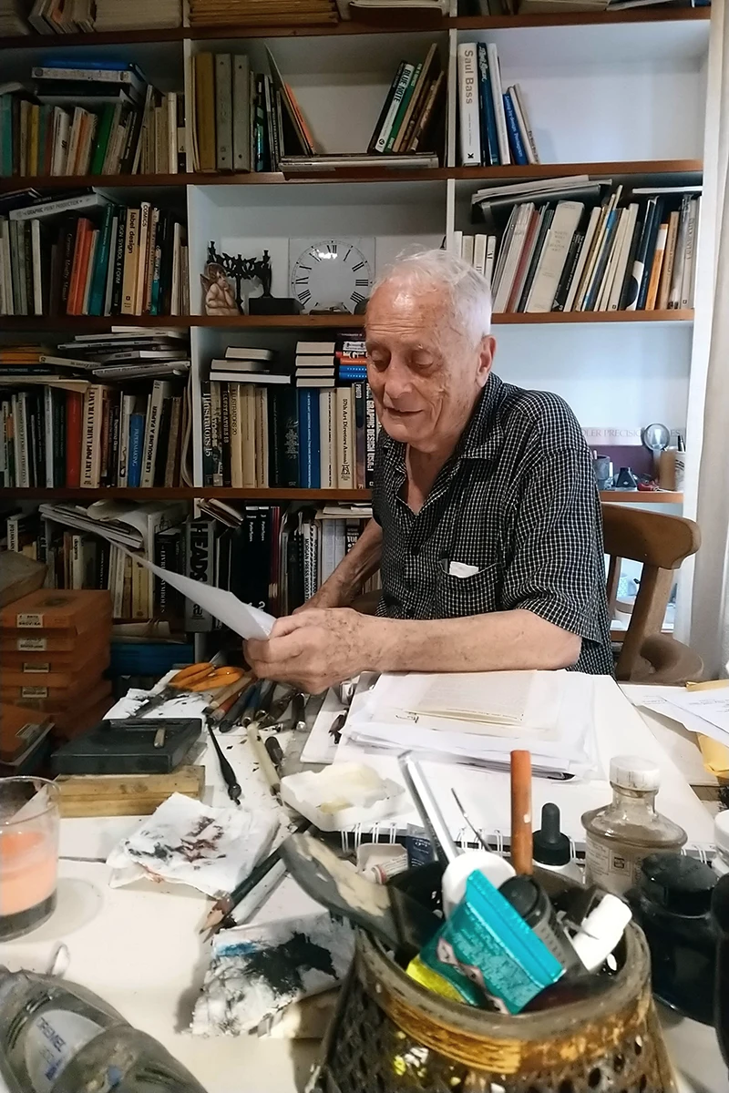 Claude nos relató detalles de su permanencia en la Escuela de Arte y cómo llegó a convertirse, junto con otros docentes de aquellos años, en uno de los pioneros, quizás el más representativo, en materializar la Especialidad de Diseño Gráfico.