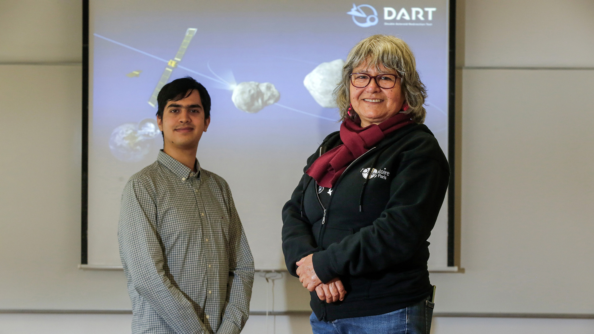 ¡Orgullo nacional! La astrónoma Dra. Myriam Pajuelo y su asistente de investigación Aldo Panfichi Sanborn, profesora en la sección Física y alumno de la Maestría en Física de la PUCP respectivamente, son los únicos peruanos del equipo oficial de investigadores que colaboran de manera voluntaria en la Prueba de Redireccionamiento del Asteroide Doble (DART, por sus siglas en inglés).