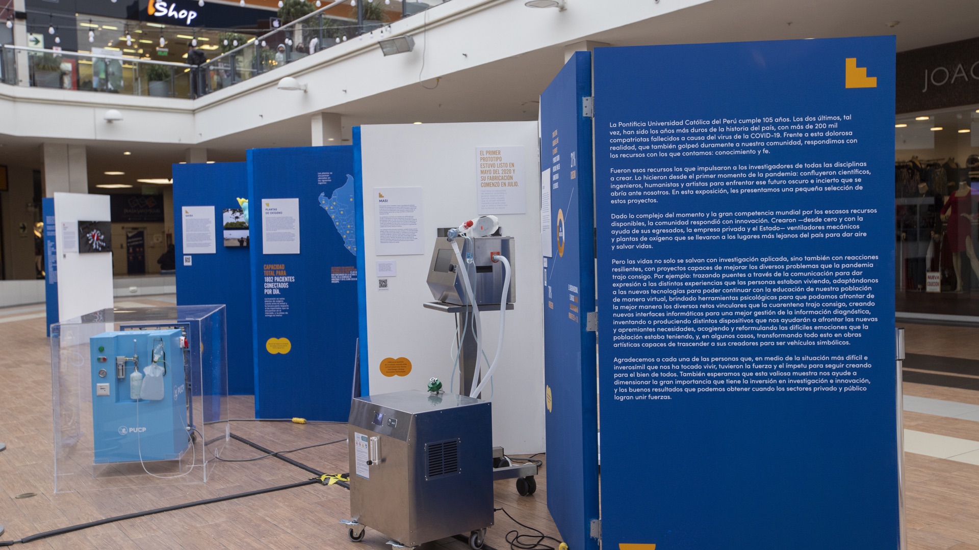 Conoce los principales proyectos PUCP que enfrentaron la pandemia en la exposición Ilumina, en Plaza San Miguel. Así es, si no pudiste verla en el CCPUCP, ahora tienes una segunda oportunidad. La muestra “Ilumina: 105 años investigando e innovando para el Perú” se mantendrá en la Plaza Central (ubicada en el primer piso) hasta el 10 de septiembre.