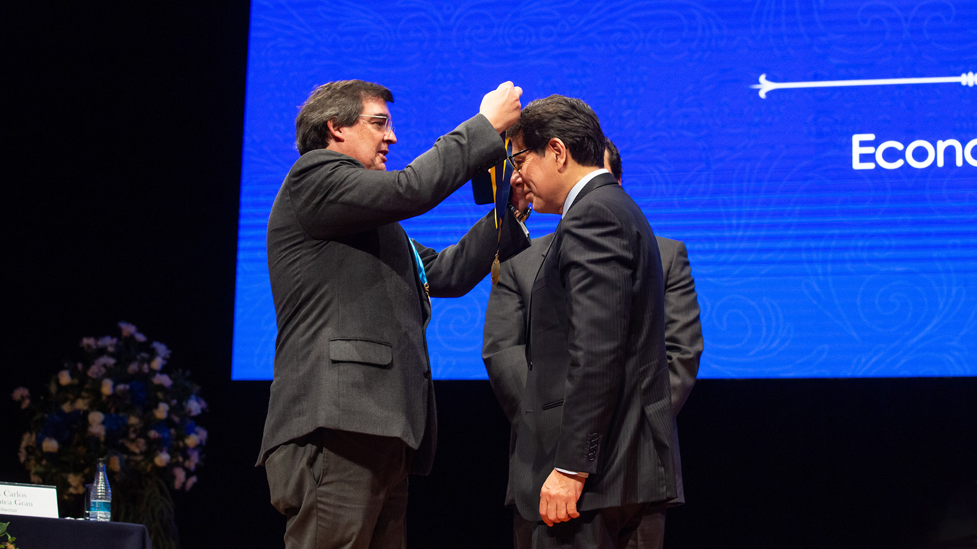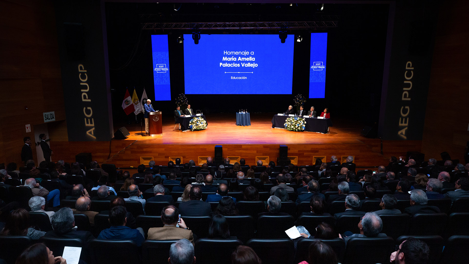 Después de dos años de realizarse de forma virtual, la XXIV Ceremonia de homenaje a exalumnos distinguidos de nuestra Universidad pudo realizarse presencialmente el pasado martes 25. En esta ocasión, los egresados PUCP que recibieron este reconocimiento fueron María Amelia Palacios (Educación), Luis Cortavarría (Contabilidad), Martín Naranjo (Economía) y Luis Peirano (Artes Escénicas).