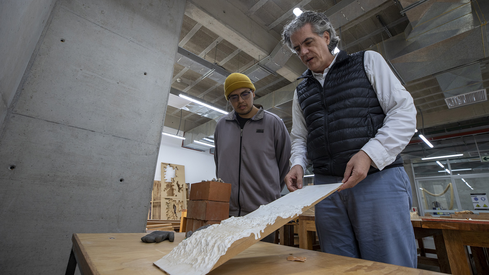 El Mag. Manuel Casiano, profesor del Departamento de Arquitectura y egresado de nuestra facultad, realizó el modelaje digital inicial del área. Este permitió la talla con las máquinas específicas para producir las formas y las elevaciones finales.