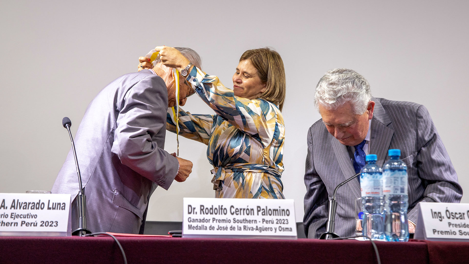 El pasado lunes 4 de diciembre, el prestigioso lingüista y profesor emérito Dr. Rodolfo Cerrón-Palomino recibió el premio Southern Perú 2023 a la creatividad humana y la Medalla José de la Riva Agüero y Osma. Él recibió este galardón «por su aporte al estudio de las lenguas y familias lingüísticas quechua, aimara, puquina, uruchipa y mochica, las cuales constituyen obras fundamentales para la construcción del conocimiento de la lingüística, la filología, la historia, la arqueología y la antropología de los Andes».
