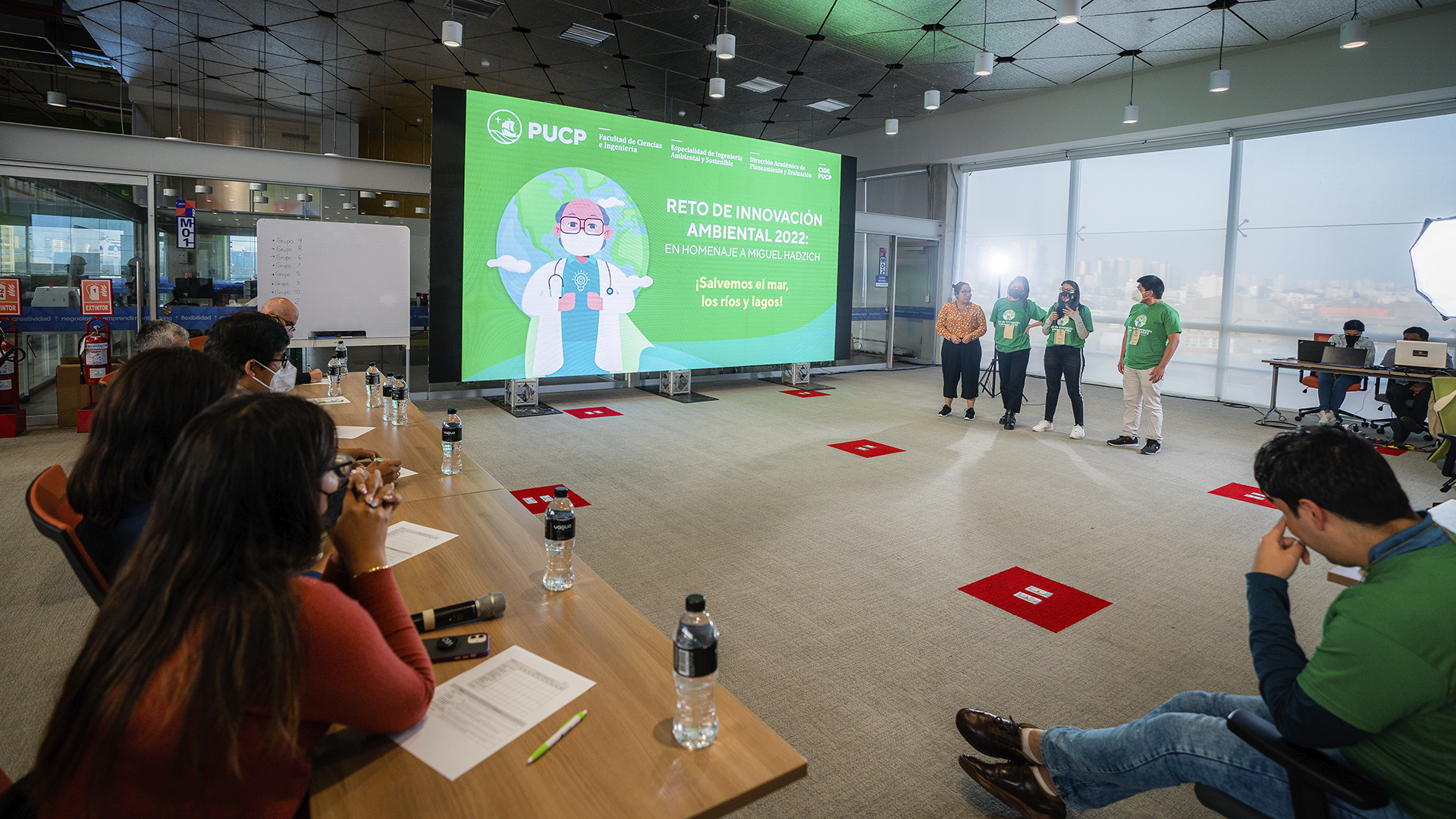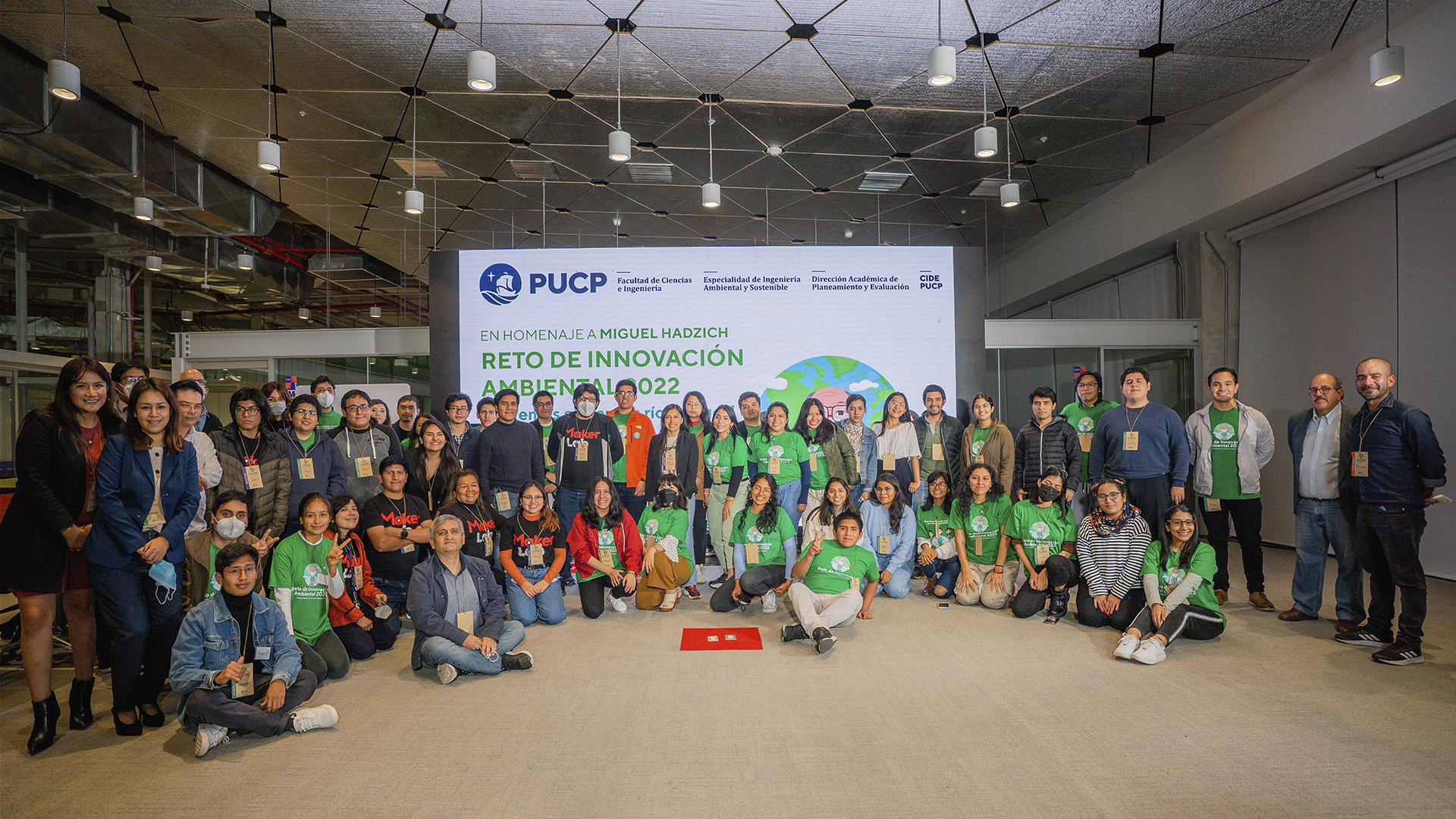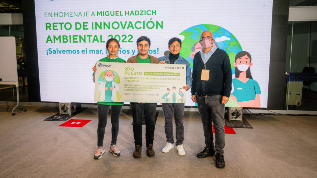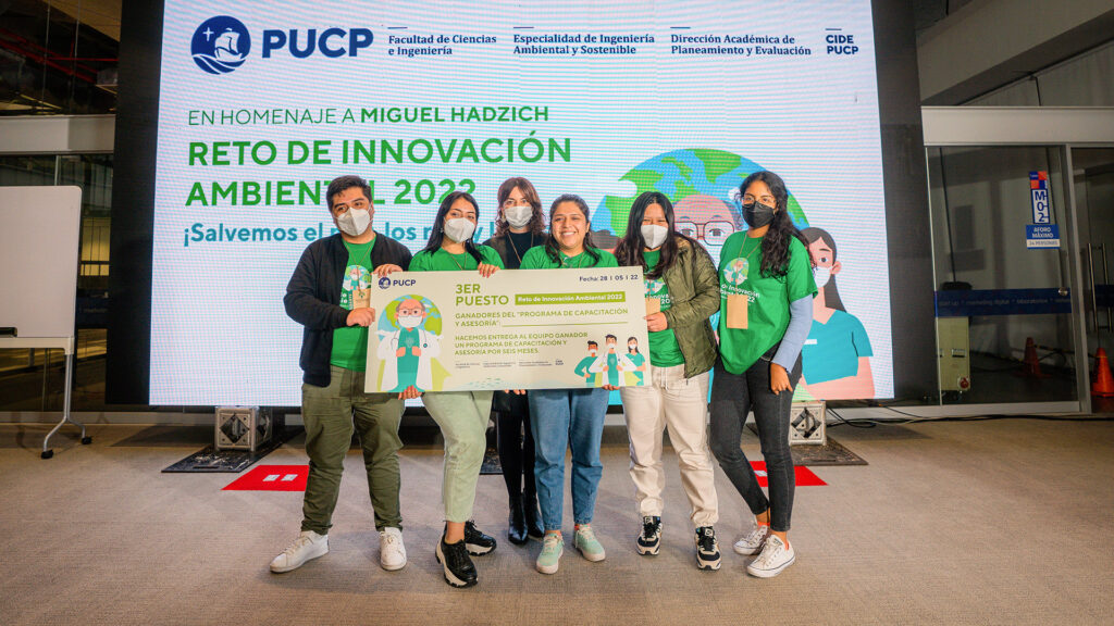 Esta primera edición del concurso fue también un homenaje a nuestro recordado profesor Miguel Hadzich.El jurado evaluó las propuestas de los equipos finalistas, con énfasis en su componente de innovación.De izq. a der.: Ramzy Kahhat, director de la Carrera de Ingeniería Ambiental y Sostenible PUCP; Francisco Rumiche, decano de la Facultad de Ciencias e Ingeniería; y Julio Vela, director del CIDE-PUCP.Los mentores fueron parte fundamental de esta experiencia.Profesores y profesoras de distintas disciplinas también participaron en estas actividades.