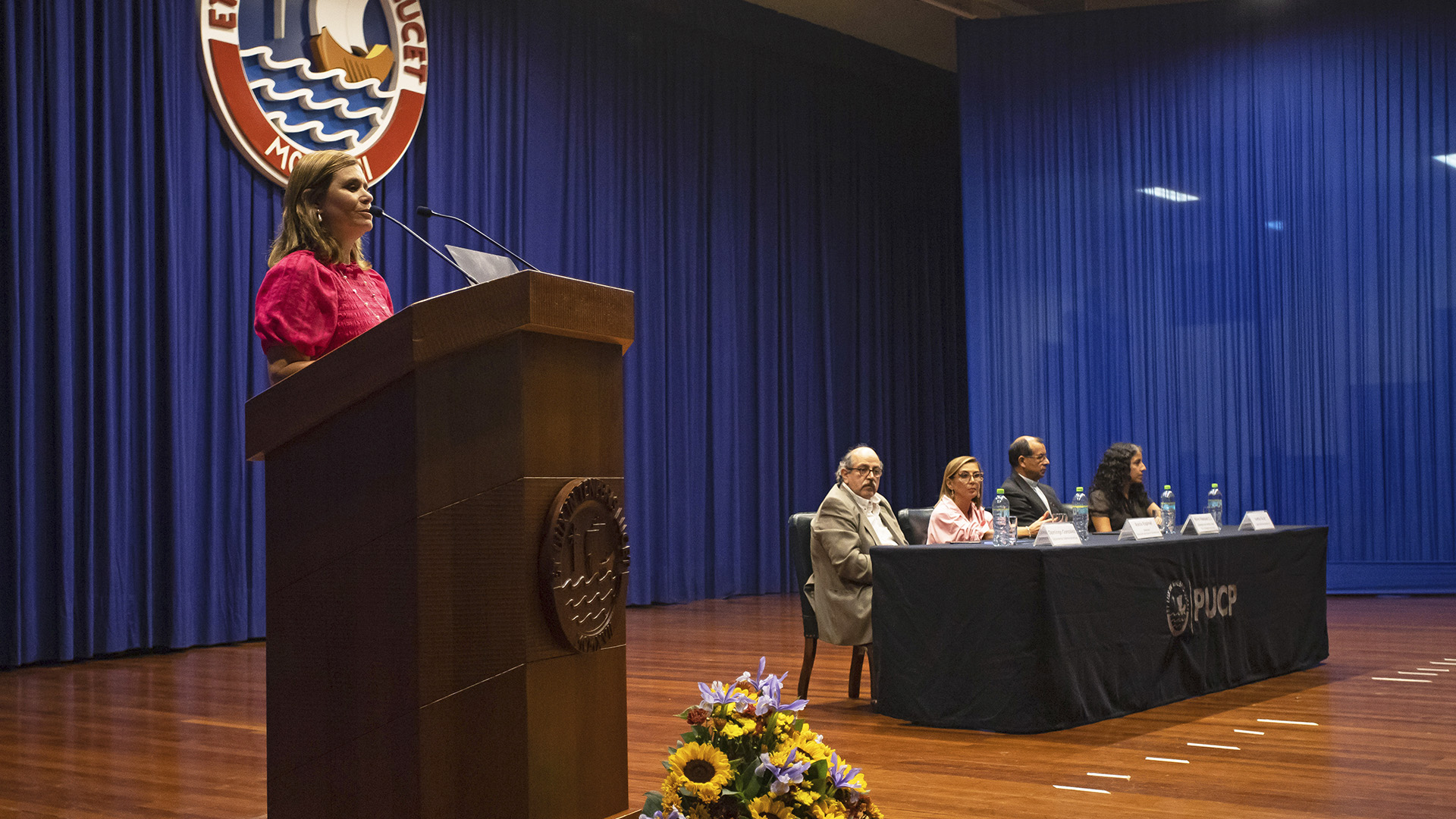 Junto al vicerrector adminitrativo, estuvieron también la Dra. Cristina del Mastro, vicerrectora académica; y Rocío Espinel, directora de la DAES. Ambas destacaron la formación integral de alto nivel que ofrece la PUCP y la calidad educativa. Espinel recomendó “sacar lo mejor de cada uno y demostrar las habilidades que los hicieron jóvenes de excelencia”.