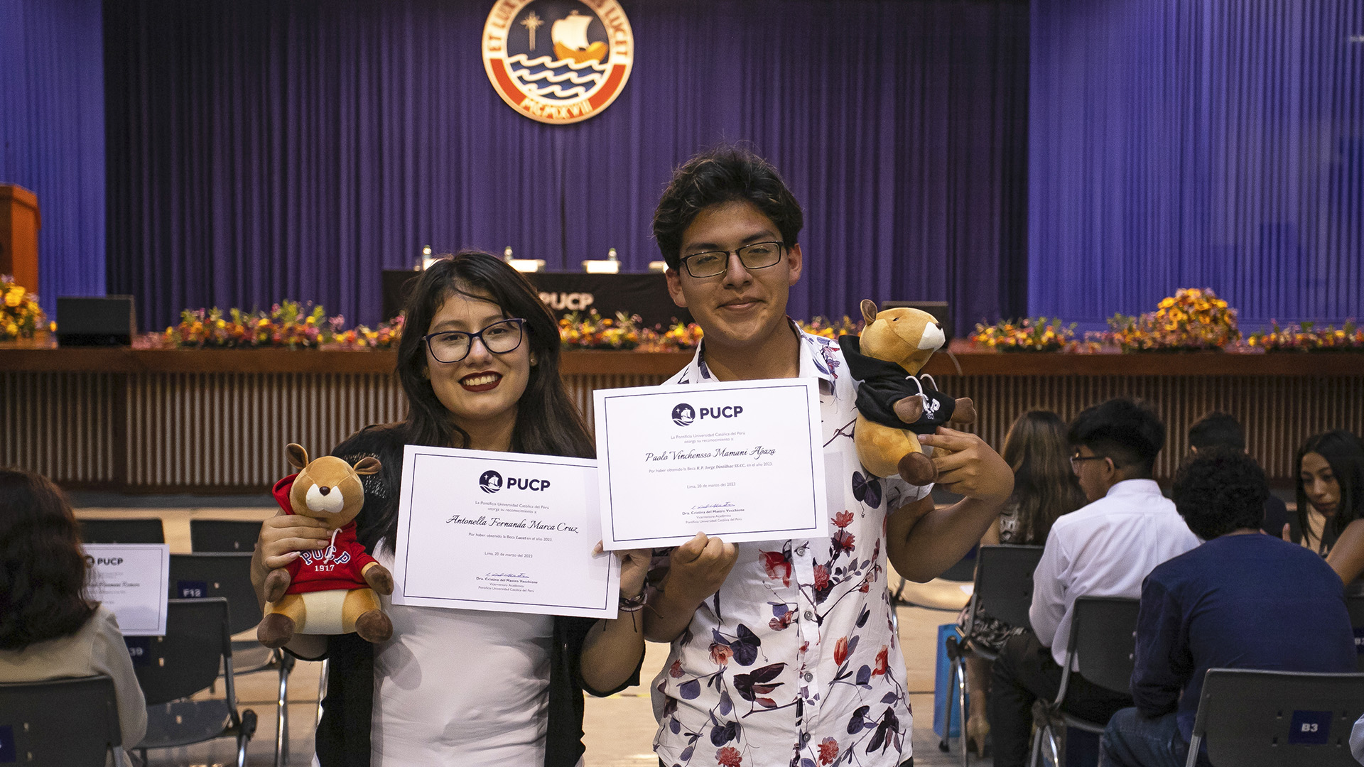 En tanto, Del Mastro aseguró que la PUCP los acompañará para vencer obstáculos que son parte de la vida. “Quiero felicitarlos y felicitarlas por haber logrado esta condición que reconoce sus capacidades académicas, y la Universidad se compromete a apoyarlos para que puedan seguir sus estudios y culminar con sus proyectos de vida», finalizó la vicerrectora.