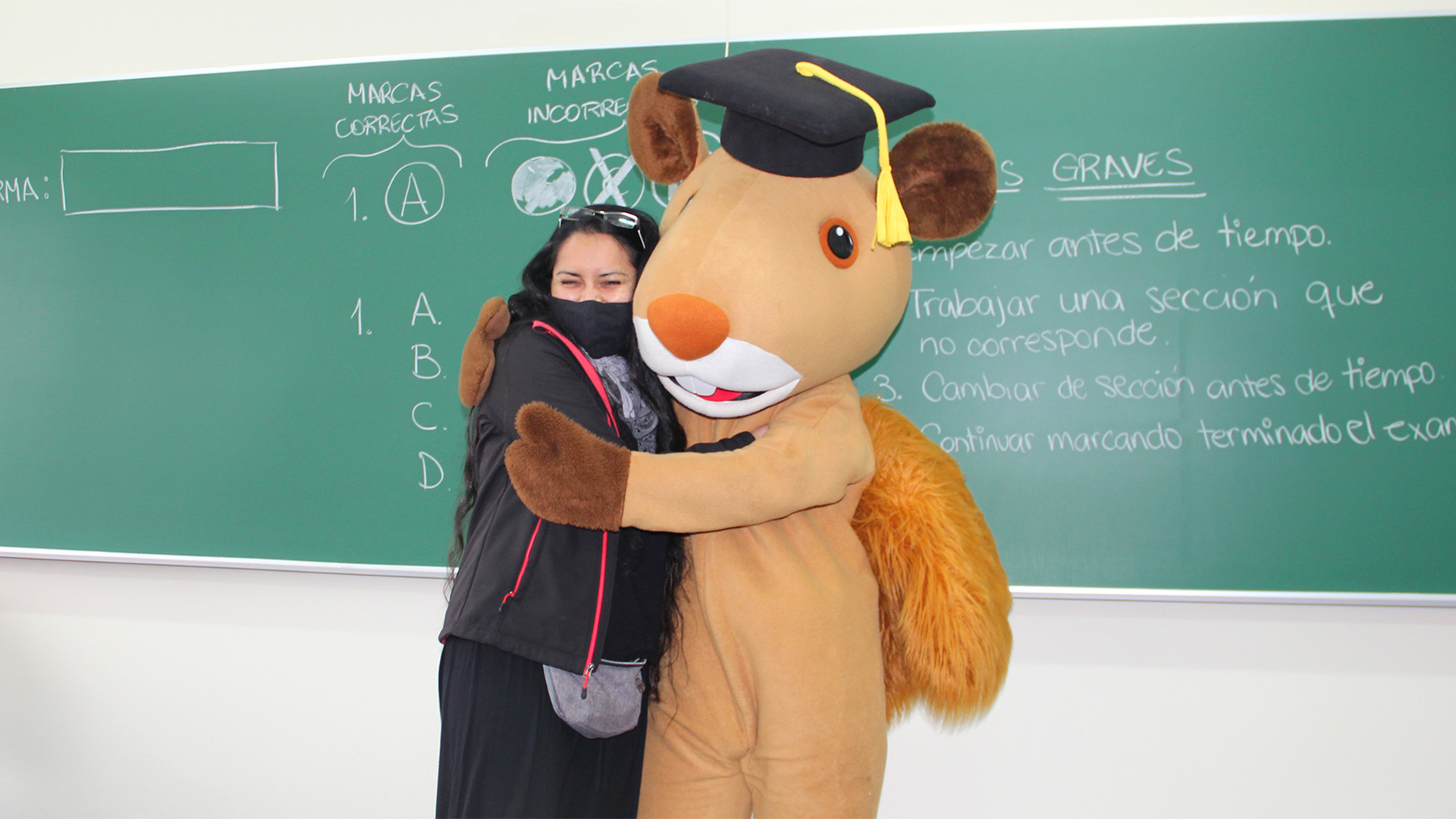 - La primera fecha especial fue el pasado 25 de junio. Aquí, los estudiantes rindieron en nuestros salones el examen de Ingreso Directo de nuestro Ciclo No Escolar (mayo – julio). Quilla estuvo muy feliz de acompañarlos y se tomó fotografías con los postulantes. El resto del semestre se dictó bajo la modalidad virtual.