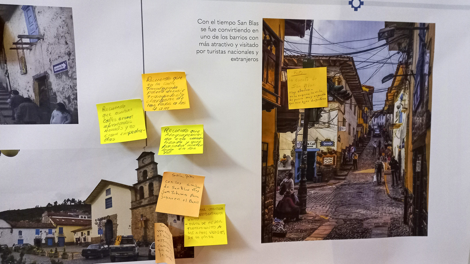 Para que surjan las ideas del proyecto, los estudiantes tuvieron el propósito claro de unir a los diversos actores sociales del barrio. Anteriormente, en el 2010, el Mag. César Lucho, profesor de la carrera de Diseño Industrial PUCP y director de la carrera, ya había tomado contacto con la Asociación de Empresas de Hospedajes de San Blas (AEHO) para desarrollar un prototipo de transporte, el cual no se concretó. Sin embargo, a fines de 2022, Lucho, retomó el contacto con AEHO para que los estudiantes de Diseño Industrial puedan colaborar con ideas y aplicar lo aprendido en las aulas para revalorizar un espacio público.