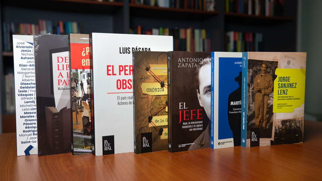 Asimismo, contamos con diversas colecciones, entre ellas Estudios andinos, Lo esencial del Derecho, Ser adolescente en el Perú, Zumbayllu y Lateral; a esta última se incorpora el libro El jefe: Haya, la Internacional Comunista y la ruptura con Mariátegui, del profesor de la Sección Historia Dr. Antonio Zapata.