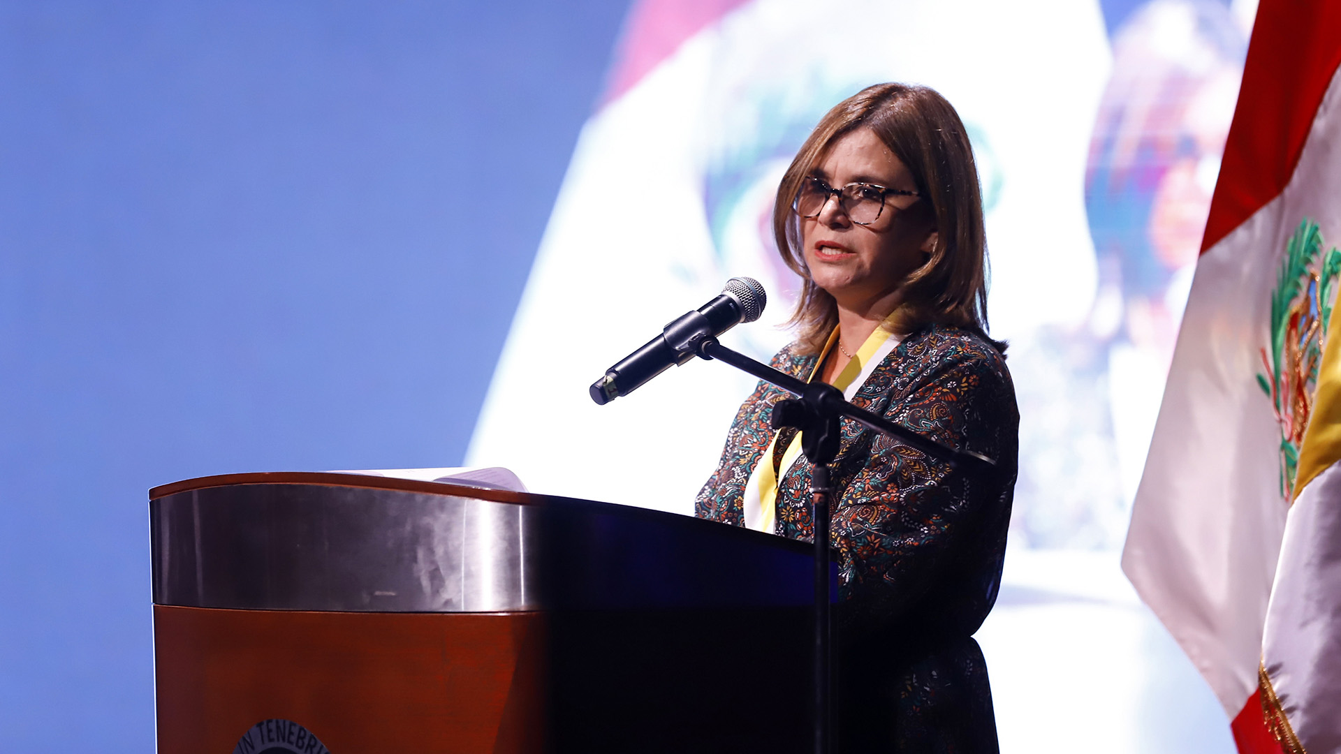 La vicerrectora académica, Dra. Cristina Del Mastro, fue la primera en expresar unas palabras dando la bienvenida a la comunidad PUCP a este nuevo año académico.