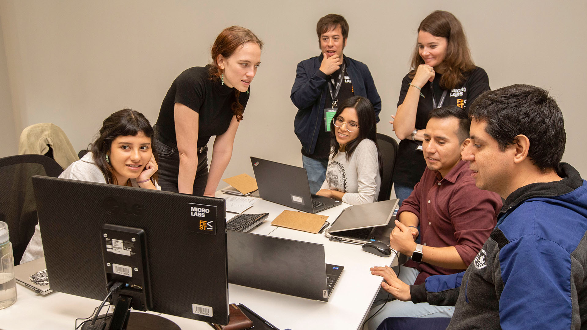 «La idea es que personas que venían de especialidades distintas colaboraran. Tenían una hora para crear un guion, dos horas y media para la fase de producción, y tan solo 30 minutos para la postproducción. Los participantes exploraron diferentes maneras de usar las IA. Se usó el chatGPT para extraer ideas, para crear el guion y para la sinopsis. Se generaron imágenes con IA, y se hizo video con ellas, con IA también. Para la voz, crearon voces sintéticas para que actuaran y narraran», señala Escobedo.