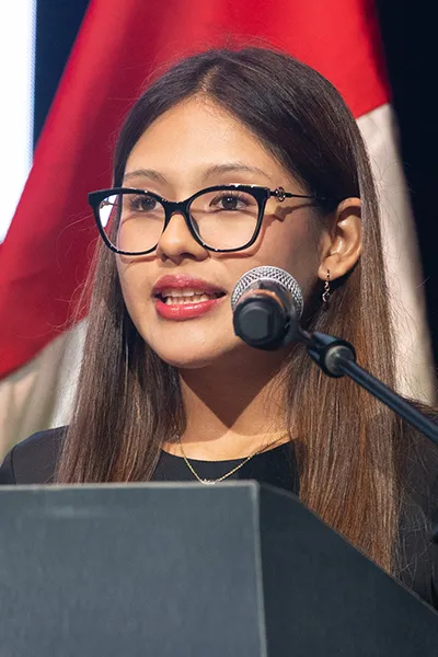 Desde su experiencia como estudiante de Derecho y REA Carla Sabrera habló de cómo la Universidad le hizo despertar ante las problemáticas del país y asumir su rol como joven: “Le agradezco a la PUCP porque constantemente nos recuerda que, antes que profesionales, debemos ser personas con conciencia social, criterio y sensibilidad frente a lo que ocurre allá afuera. Que el privilegio nunca nuble nuestra empatía. Más que desearles un buen inicio de clases, quisiera invitarlos a no pasar por la Universidad sin transformarse”.